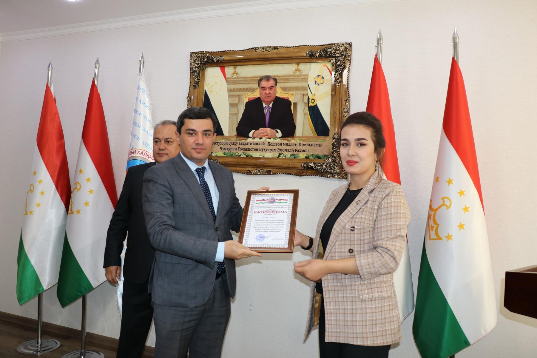 - Ҳизби Халқии Демократии Тоҷикистон дар асоси Конститутсия, қонунҳои конститутсионӣ, қонунгузории Ҷумҳурии Тоҷикистон ва санадҳои байналхалқии ҳуқуқие, ки Ҷумҳурии Тоҷикистон эътироф кардааст, ҳамчунин, зери шиори «Барои пешрафт ва зиндагии шоистаи мардум!» фаъолият намуда, барои таъмини рушди устувор ва бомароми мамлакат, фароҳам овардани имкониятҳои баробар ҷиҳати татбиқи неруи инсонӣ дар асоси баробарӣ, адолат ва эҳтиром гузоштан ба шаъну шарафи инсон равона шудааст, пайваста саъю кӯшиш менамояд,-таъкид кардр Кумитаи иҷроияи ҲХДТ ноҳияи Шоҳмансур Н.Каримзода.