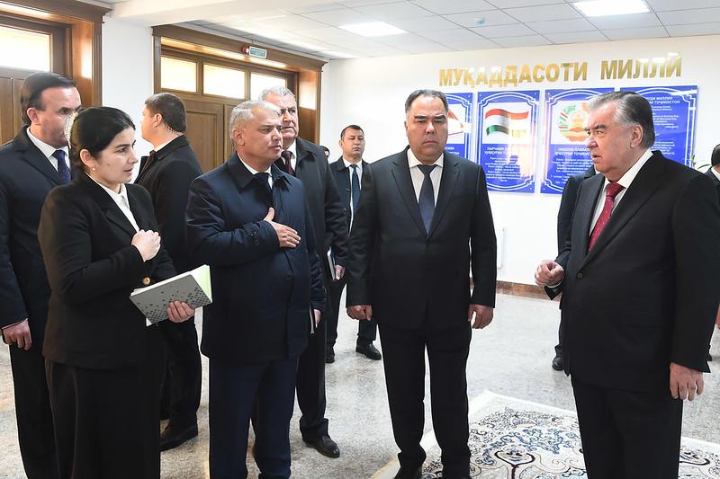 Президенти мамлакат муҳтарам Эмомалӣ Раҳмон аз кабинетҳои фаннӣ ва толори варзишӣ боздид ба амал оварда, бо омӯзгорону хонандагони муассиса суҳбати озоду самимӣ намуданд. Хонандагонро ҳидоят намуданд, ки аз шароити мусоиди фароҳамгардида самаранок истифода бурда, дониши амиқ омӯзанд ва мунтазам ба варзишу тарбияи ҷисмонӣ машғул шаванд,