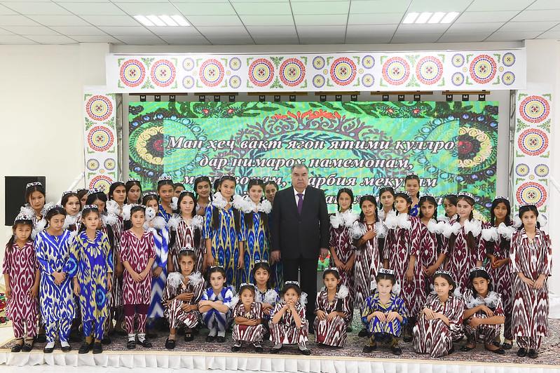 Сарвари давлат муҳтарам Эмомалӣ Раҳмон дар ошёнаи якуми бинои истиқоматӣ бо 122 нафар ятимону бепарасторон, ки аз 7 шаҳру ноҳияҳои вилояти Хатлон ба ҳам омадаанд, суҳбати самимона анҷом дода, ҳар яки онҳоро бо туҳфаҳои арзанда, ки аз китоб, сару либоси зимистона ва кумакҳои молиявӣ иборат буд, қадрдонӣ намуданд.