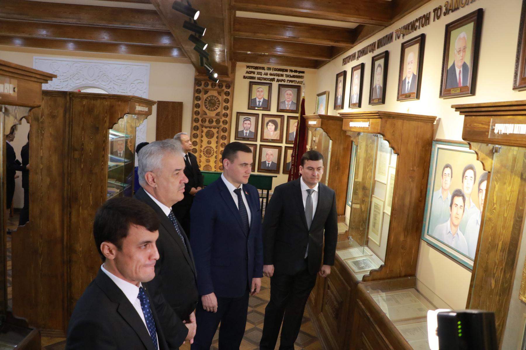 Сипас, меҳмонон аз дастовардҳои илмию тахникии донишгоҳ, ки дар ошёнаи якуми бинои асосии донишгоҳ бо тарроҳии наву замонавӣ ба намоиш гузошта шуда буд, дидан намуданд. Намоишгоҳ аз гӯшаҳои китобҳои таълифнамудаи Асосгузори сулҳу ваҳдати миллӣ-Пешвои миллат, Президенти Ҷумҳурии Тоҷикистон муҳтарам Эмомалӣ Раҳмон, китобҳои тозанашри илмию таълимии устодону кормандони донишгоҳ, таҳқиқотҳои илмие, ки аз ҷониби шаҳрвандони хориҷӣ дар самтҳои гуногун анҷом дода шудаанд, дастгоҳҳои замонавии таълимӣ-истеҳсолӣ, китобҳои нодири таърихӣ, дастовардҳои Маркази биотехнология ва Парки технологии донишгоҳ, Институти илмӣ-тадқиқотӣ, таҷҳизотҳои муосири фанҳои табиию риёзӣ, маҷаллаҳои илмӣ-таҳқиқотӣ ва ғайра иборат буд, ки он хеле таъсирбахш ва ҷолиби диққат буданд.