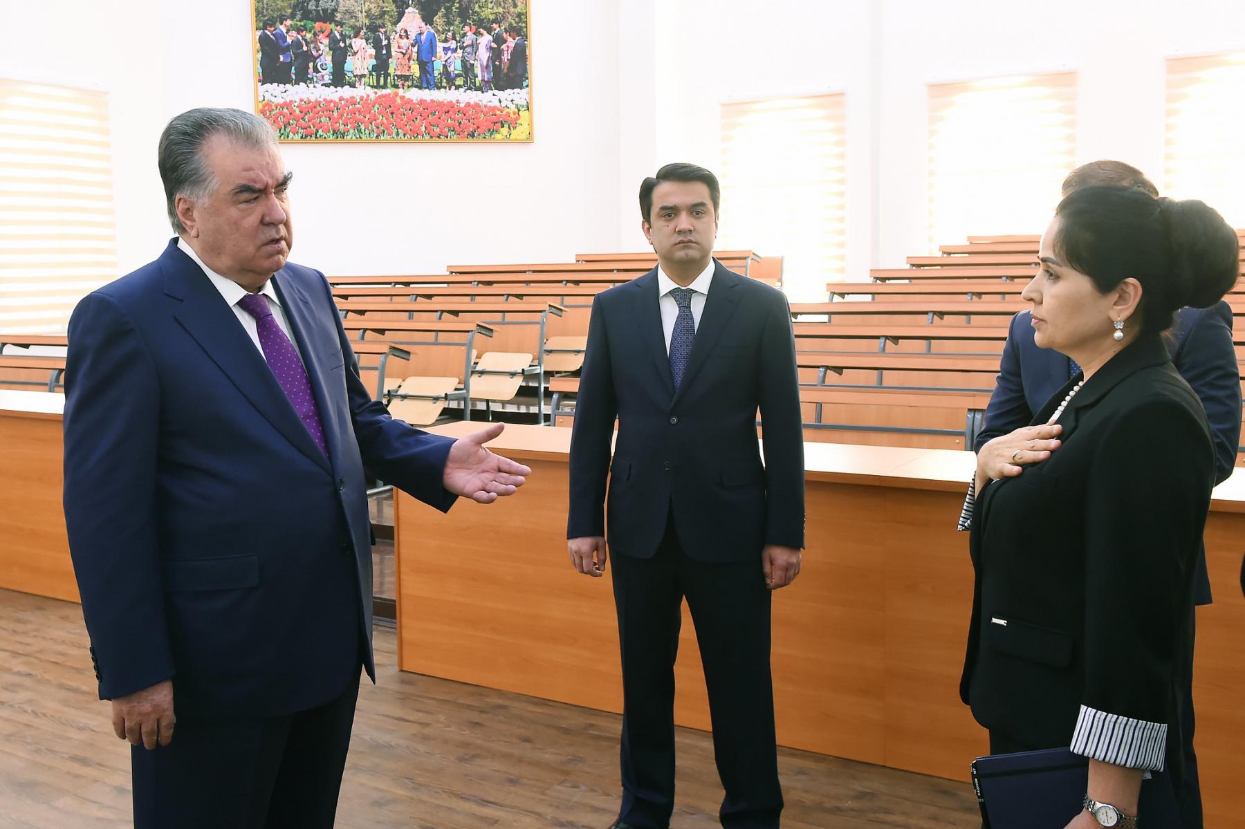 Президенти мамлакат бо шароити муосири донишомӯзӣ дар донишкада шинос шуда, ба сифати корҳои анҷомёфта баҳои баланд доданд.