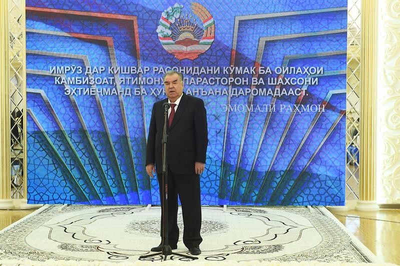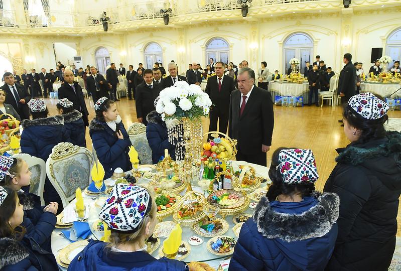 Дар ҳамин ҷо Пешвои миллат муҳтарам Эмомалӣ Раҳмон бо ятимони кул, ки бо амри тақдир аз навозиши волидайн бенасиб мондаанд, вохӯрӣ намуда, бо оростани дастархони идона ба онҳо тӯҳфаҳои арзишманд тақдим карданд.