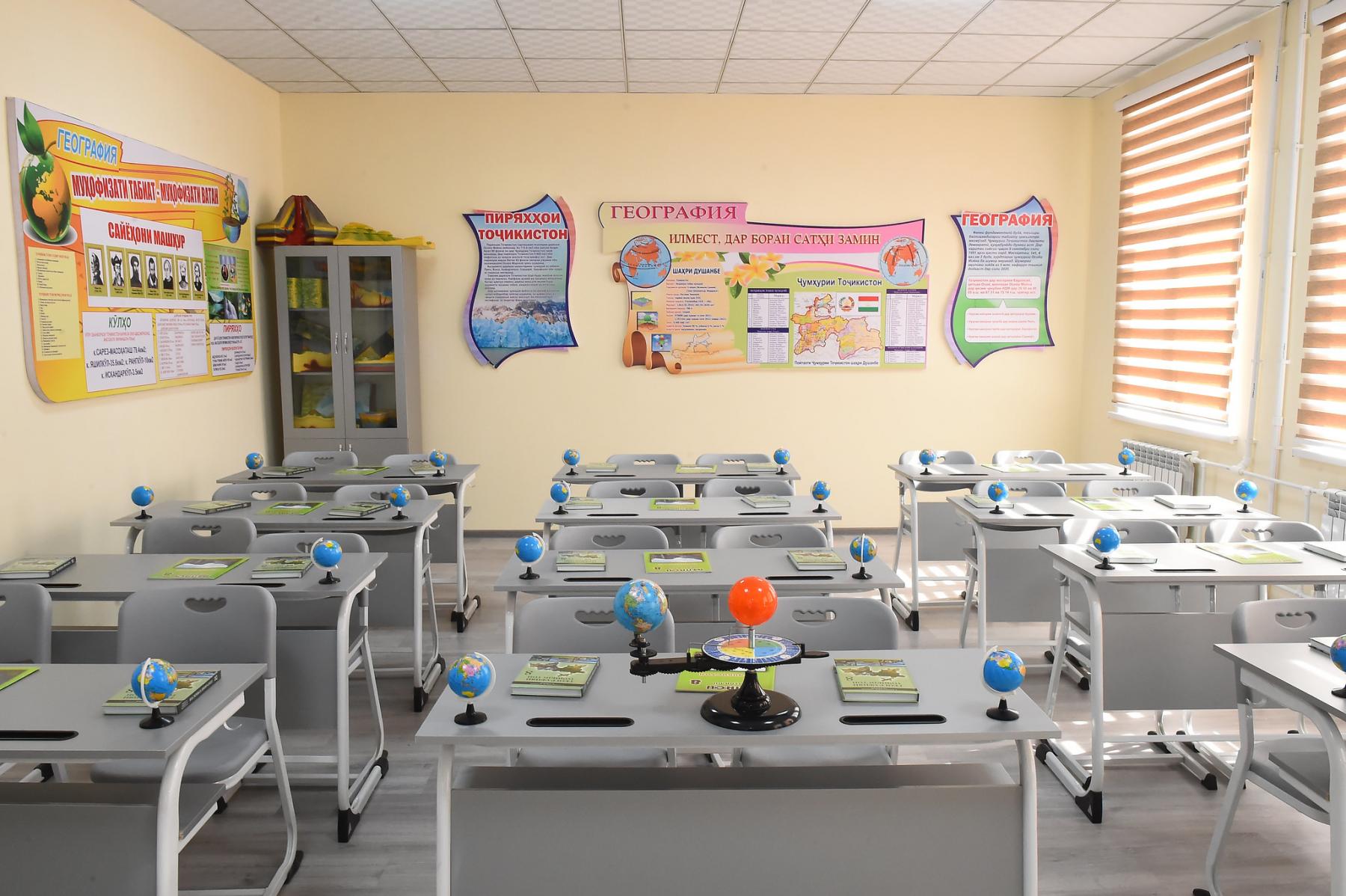 Гимназия барои 2 ҳазор хонанда дар як баст пешбинӣ гардида, дар он мутобиқ ба меъёрҳои байналмилалӣ шароити таълим фароҳам оварда шудааст. Аз ҷумла, иншоот дорои 70 синфхонаи барҳавою зебо буда, барои гузаронидани дарсҳо дар тамоми синфхонаҳои он тахтаҳои электронӣ насб шудааст. Дар муассиса 22 кабинети фаннӣ ташкил гардида, ба омӯзиши фанҳои дақиқ таваҷҷуҳи хоса дода мешавад. Аз ин ҷост, ки 1 адад лабараторияи алоҳида барои гузаронидани дарсҳои назариявии химия ва 1 лабараторияи физика бо тамоми дастгоҳҳои заруриву аёниятҳои хониш бунёд ёфтааст. Бо истифода аз чунин имконот хонандагон таҷрибаҳои гуногуни химиявӣ гузаронида, дониши худро мукаммал менамоянд. Ҳамчунин дар муассиса синфхонаҳои алоҳида барои омӯзиши фанҳои биология, ҳуқуқи инсон ва омодагии ибтидоии ҳарбӣ бунёд ёфтааст.