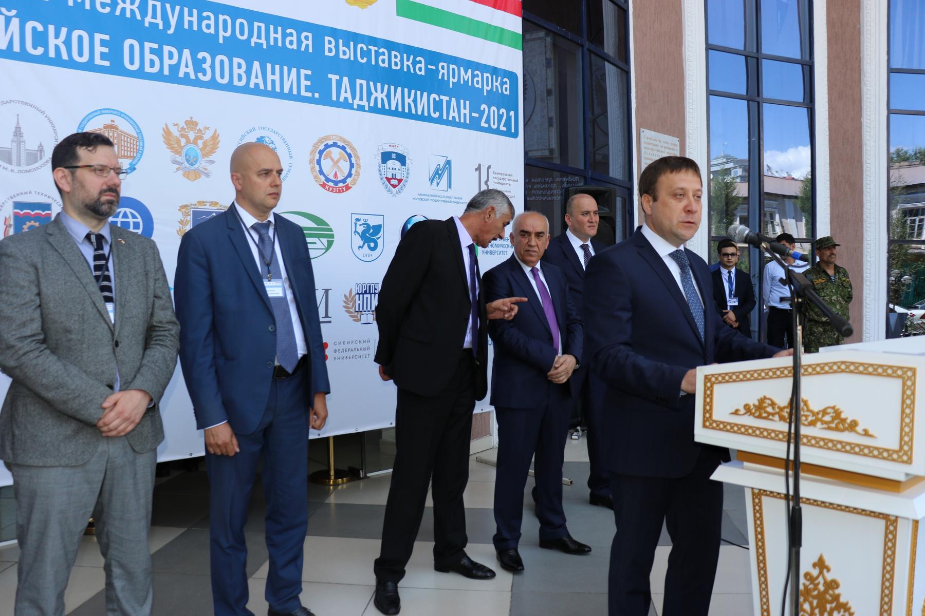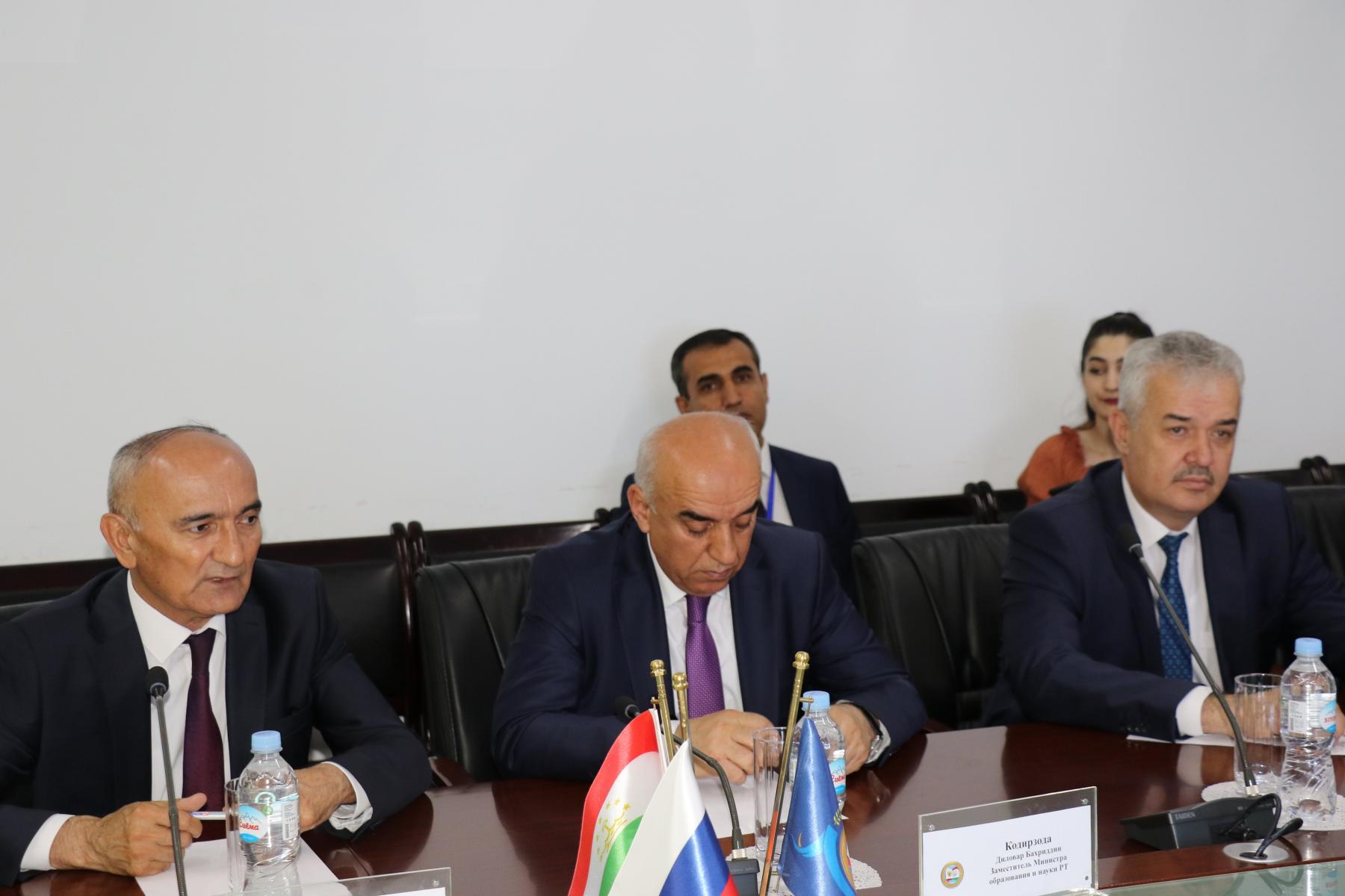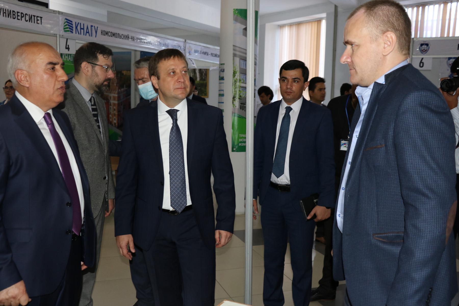 Дар доираи намоишгоҳ-ярмаркаи мазкур, дар толори Шӯрои олимони донишгоҳ мулоқоти Имомзода М.С. – вазири маориф ва илми Ҷумҳурии Тоҷикистон бо И.С. Лякин-Фролов - сафири фавқулода ва мухтори Федератсияи Россия дар Ҷумҳурии Тоҷикистон Шведов П.А. – муовини Маркази илм ва фарҳанги Россия “Россотрудничиества”-и Федератсияи Россия, Иванов И.С. - директори намояндагии Маркази илм ва фарҳанги Россия «Россотрудничество» дар Душанбе Бурлко И Е. – котиби якуми сафорат Федератсияи Россия дар Ҷумҳурии Тоҷикистон баргузор гардид, ки дар он ҷонибҳо вобаста ба ҳамкориҳои ҷойдоштаи кишварҳо дар самти маориф ва илм ибрози назар намуданд. Аз ҷумла, зикр гардид, ки дар доираи ҳамкориҳои муштарак бояд ҷиҳати бо сифати баланд сохта ба истифода додани мактабҳои русӣ, таъмини муассисаҳои русзабон бо омӯзгорони варзида ва китобҳои дарсию бадеӣ, такмили ихтисоси омӯзгорон, вусъат бахшидани ҳамкориҳо миёни муассисаҳои таҳсилоти олии касбии ҳарду кишвар, татбиқи босамари барномаҳои давлатӣ дар самти омӯзиш ва такмили забони русӣ чораҳои зарурӣ андешида шавад.