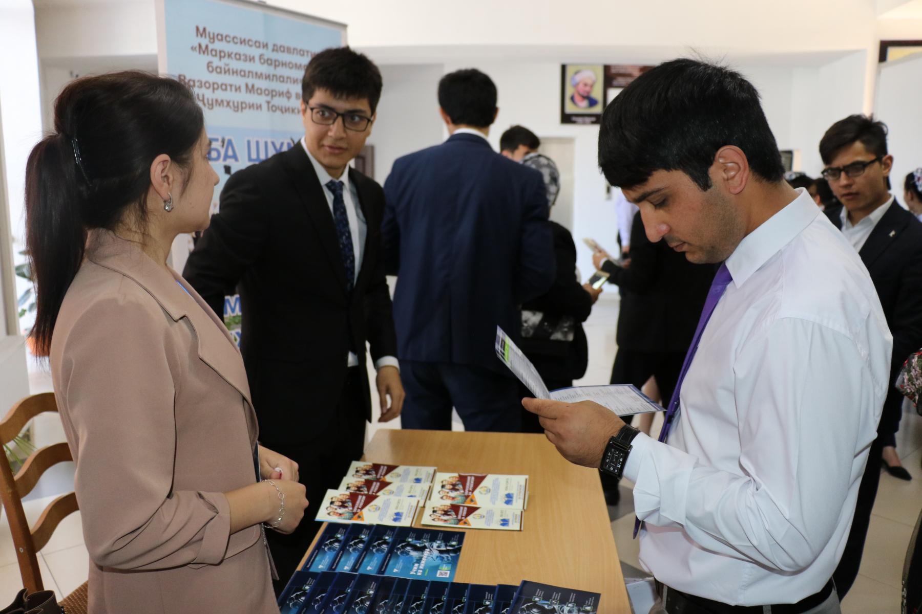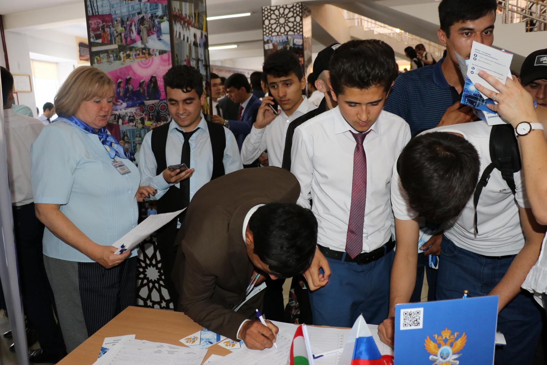 Сипас, дар саҳни донишгоҳ бо иштирокдорони намоишгоҳ-хонандагони муассисаҳои таҳсилоти умумӣ, довталабон ва волидайн мулоқоти намояндагони Вазорати маориф ва илм ва Маркази илм ва фарҳанги Россия “Россотрудничество” баргузор гардида, бо буридани лентаи рамзӣ иштирокдорон аз намоишгоҳ дидан карданд.
