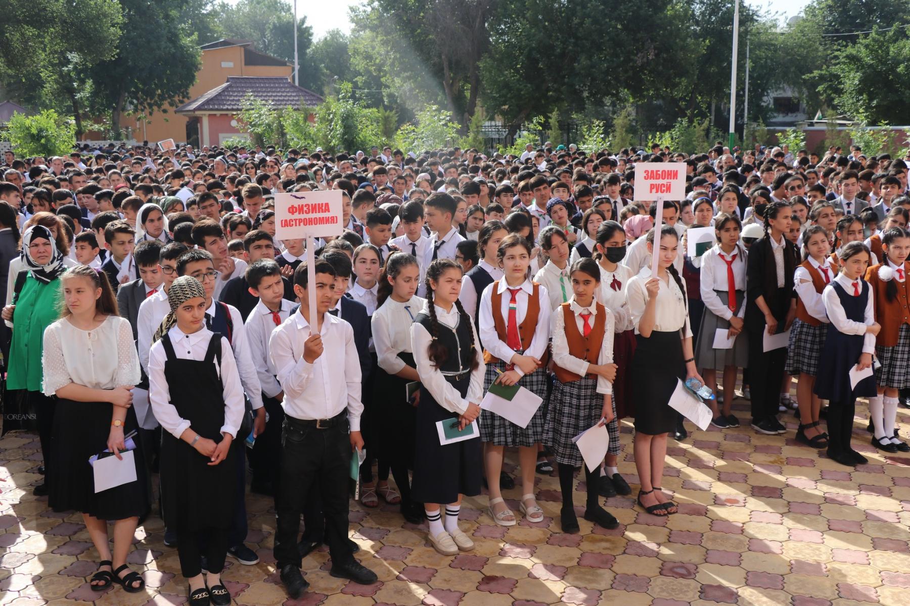 Баъди маросими ифтитоҳӣ хонандагон вобаста ба фанҳо ба гурӯҳҳо ҷудо шуда, донишу маҳорати худро нишон дода истодаанд.