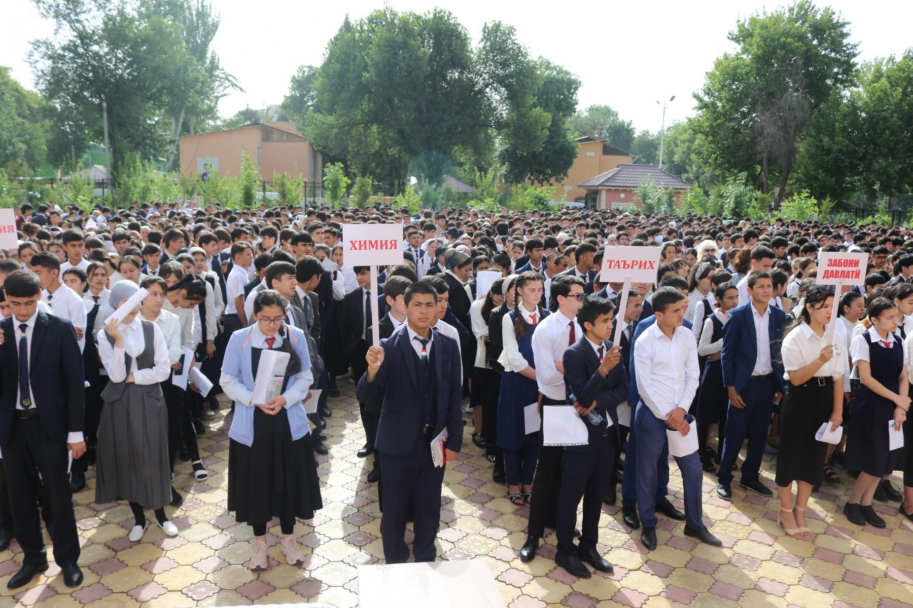 Баъди маросими ифтитоҳӣ хонандагон вобаста ба фанҳо ба гурӯҳҳо ҷудо шуда, донишу маҳорати худро нишон дода истодаанд.