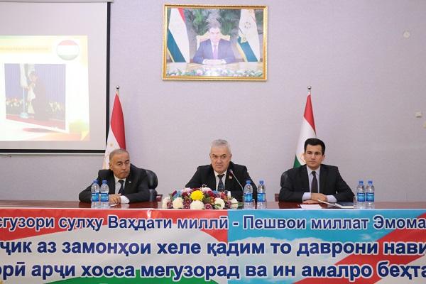 Конференсия бо садо додани Суруди миллии Ҷумҳурии Тоҷикистон оғоз гардида, вазири маориф ва илм ҳозиринро ба Рӯзи Парчами давлатӣ табрику таҳният гуфта, ҳамзамон, қайд намуд, ки Парчам рамзи озодии миллат, ифтихори миллӣ ва ҳисси баланди меҳандӯстиву хештаншиносӣ ба шумор меравад.