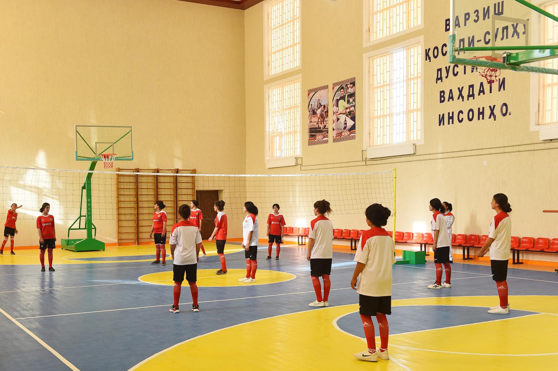 Ҳамзамон дар шафати бино майдончаи зебову замонавии варзишӣ ба истифода дода шудааст.