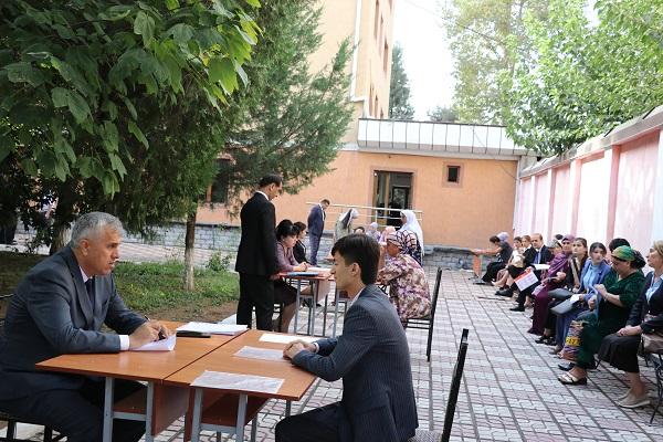 Дар рафти қабул шаҳрвандонон, асосан, ҷиҳати қабули хонандагон ба синфи 1, қабул, интиқол ва барқарор намудан дар муассисаҳои таҳсилоти миёна ва олии касбӣ, интиқол аз гурӯҳи ғайриройгон ба гурӯҳи ройгон, чопи китобҳо, таъмин бо хобгоҳ ва чанде дигар дархосту муроҷиатҳои худро пешниҳод намуданд. Дар умум, давоми рӯз дар рафти қабули шаҳрвандон 82 нафар шаҳрванд иштирок намуд.