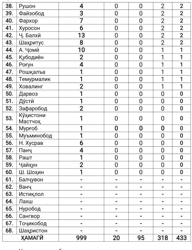 Натиҷаи ҷамбасти даври ҷумҳуриявии олимпиадаҳои фаннӣ барои хонандагони синфҳои 5-6-и муассисаҳои таҳсилоти умумии шаҳру ноҳияҳои ҷумҳурӣ аз фанҳои ҷамъиятӣ-гуманитарӣ нишон дод, ки хонандагони шаҳри Душанбе сазовори 138 ҷойи ифтихорӣ (8 медали тилло, 38 медали нуқра ва 92 медали биринҷӣ), вилояти Суғд сазовори 116 ҷойи ифтихорӣ (8 медали тилло, 29 медали нуқра ва 79 медали биринҷӣ), вилояти Хатлон сазовори 112 ҷойи ифтихорӣ (3 медали тилло, 14 медали нуқра ва 95 медали биринҷӣ), шаҳру ноҳияҳои тобеи ҷумҳурӣ сазовори 42 ҷойи ифтихорӣ (3 медали нуқра ва 39 медали биринҷӣ) ва Вилояти Мухтори Кӯҳистони Бадахшон сазовори 25 ҷойи ифтихорӣ (1 медали тилло, 11 медали нуқра ва 13 медали биринҷӣ) гардиданд.