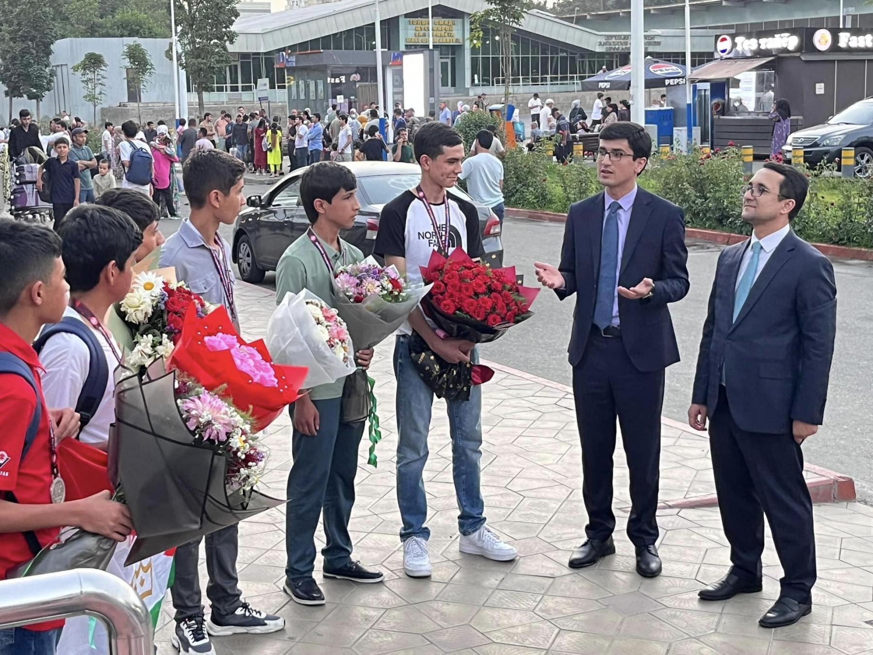 Имрӯз, 2-юми июл дар Фурӯдгоҳи байналмилалии шаҳри Душанбе истиқболи ғолибони олимпиадаи байналмилалии наврасони Балкан «JBMO» аз фанни математика сурат гирифт.