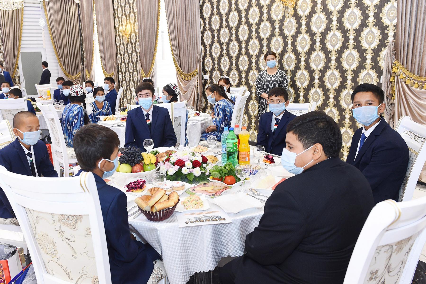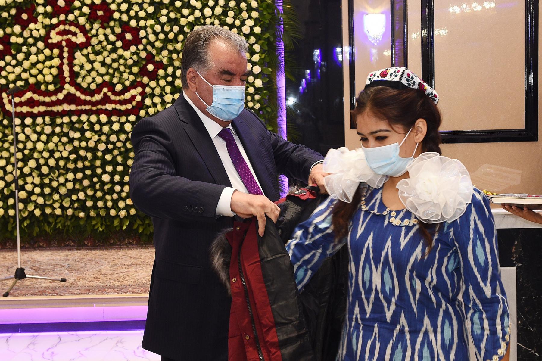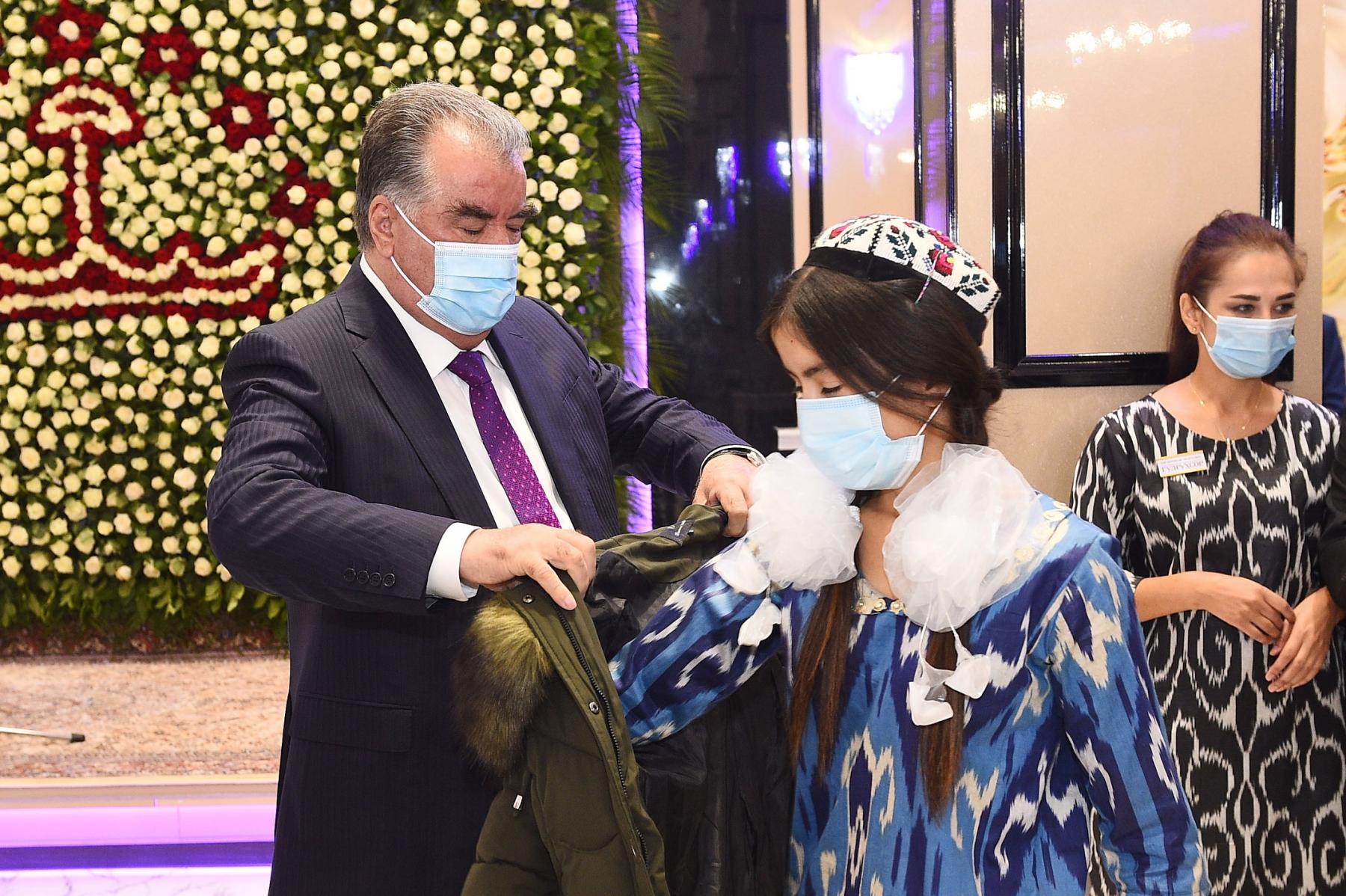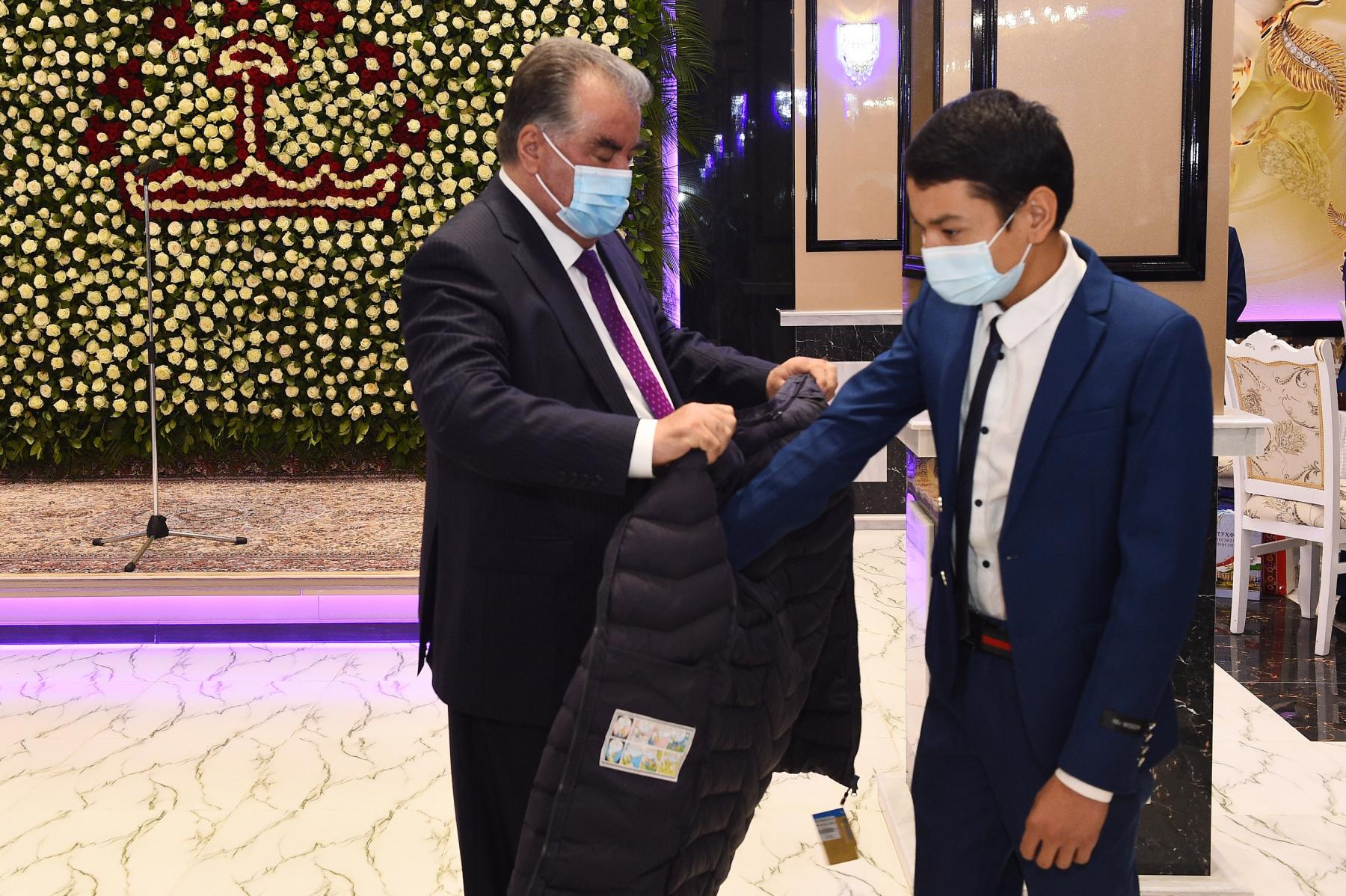 Дар ҳамин ҷо Президенти мамлакат муҳтарам Эмомалӣ Раҳмон ба 78 ятим, писарону духтарон, ки зери парастории Ҳукумати мамлакат қарор доранд, туҳфаҳо иборат аз сару либосӣ мавсимӣ, шиму костюм ва пойафзол тақдим намуданд.