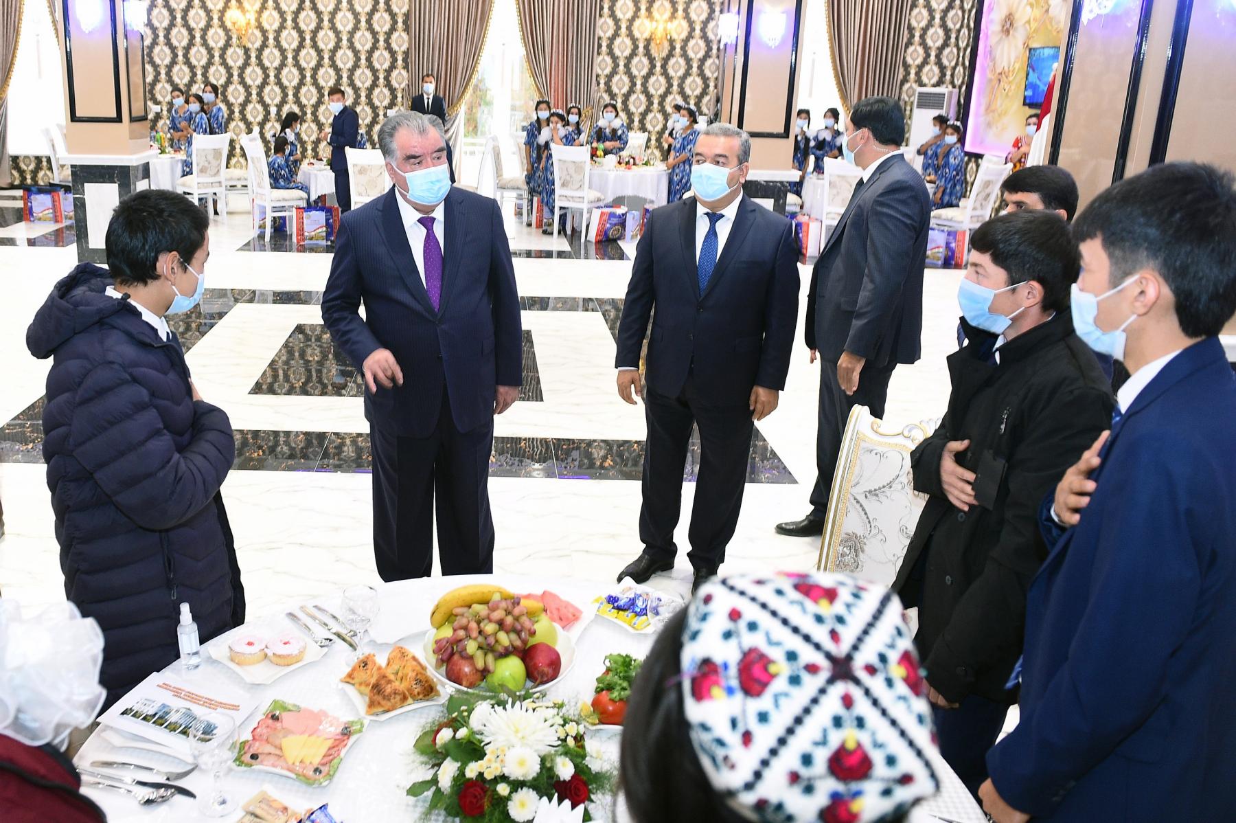 Дар ҳамин ҷо ҳамчунин Пешвои муаззами миллат бо як гурӯҳ ятимон ва маъюбон аз ноҳияҳои Қубодиён, Дӯстӣ, Носири Хусрав ва Шаҳритус мулоқот намуда, аз ҳолу аҳволи онҳо пурсон шуданд.