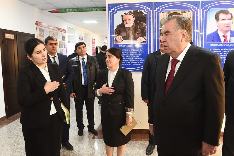 Президенти мамлакат муҳтарам Эмомалӣ Раҳмон аз кабинетҳои фаннӣ ва толори варзишӣ боздид ба амал оварда, бо омӯзгорону хонандагони муассиса суҳбати озоду самимӣ намуданд. Хонандагонро ҳидоят намуданд, ки аз шароити мусоиди фароҳамгардида самаранок истифода бурда, дониши амиқ омӯзанд ва мунтазам ба варзишу тарбияи ҷисмонӣ машғул шаванд,