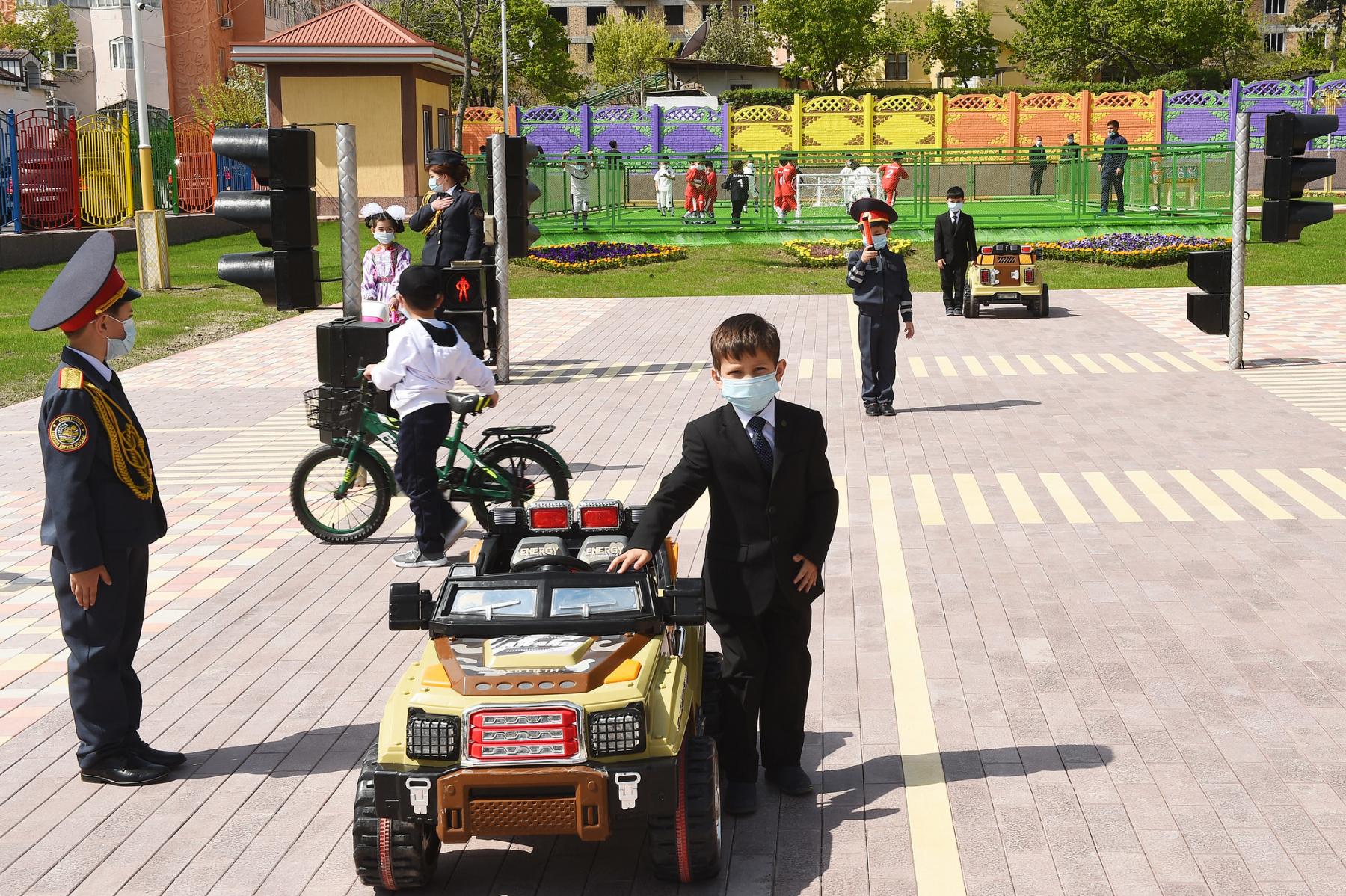 Инчунин дар саҳни ҳавлии кӯдакистон 7 айвонча, майдончаи варзишӣ барои бозии футбол, ду ҳавзи шиноварӣ бунёд гардидааст. Дар ин муассисаи томактабӣ омӯзиш бо забонҳои тоҷикӣ, русӣ ва англисӣ ба роҳ монда шудааст.