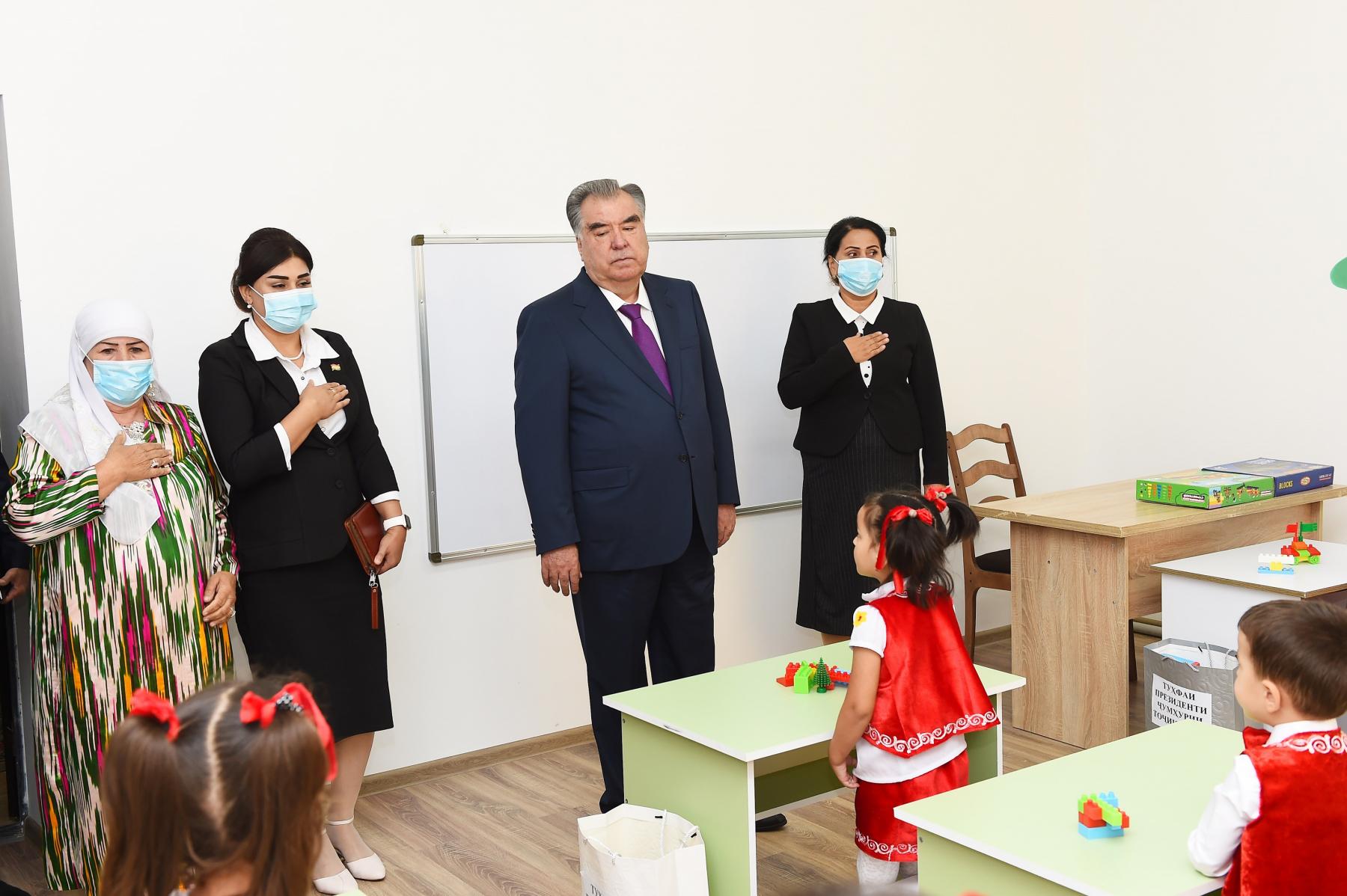 Сарвари давлат муҳтарам Эмомалӣ Раҳмон дар кӯдакистони мазкур бо мураббиёну масъулини ин даргоҳи таълимӣ суҳбати озоду самимӣ анҷом дода, тарбиятдиҳандагонро ба он ҳидоят намуданд, ки насли наврасро дар руҳияи ватандӯстию хештаншиносӣ ва омӯхтани илмҳои муосир ба воя расонанд.