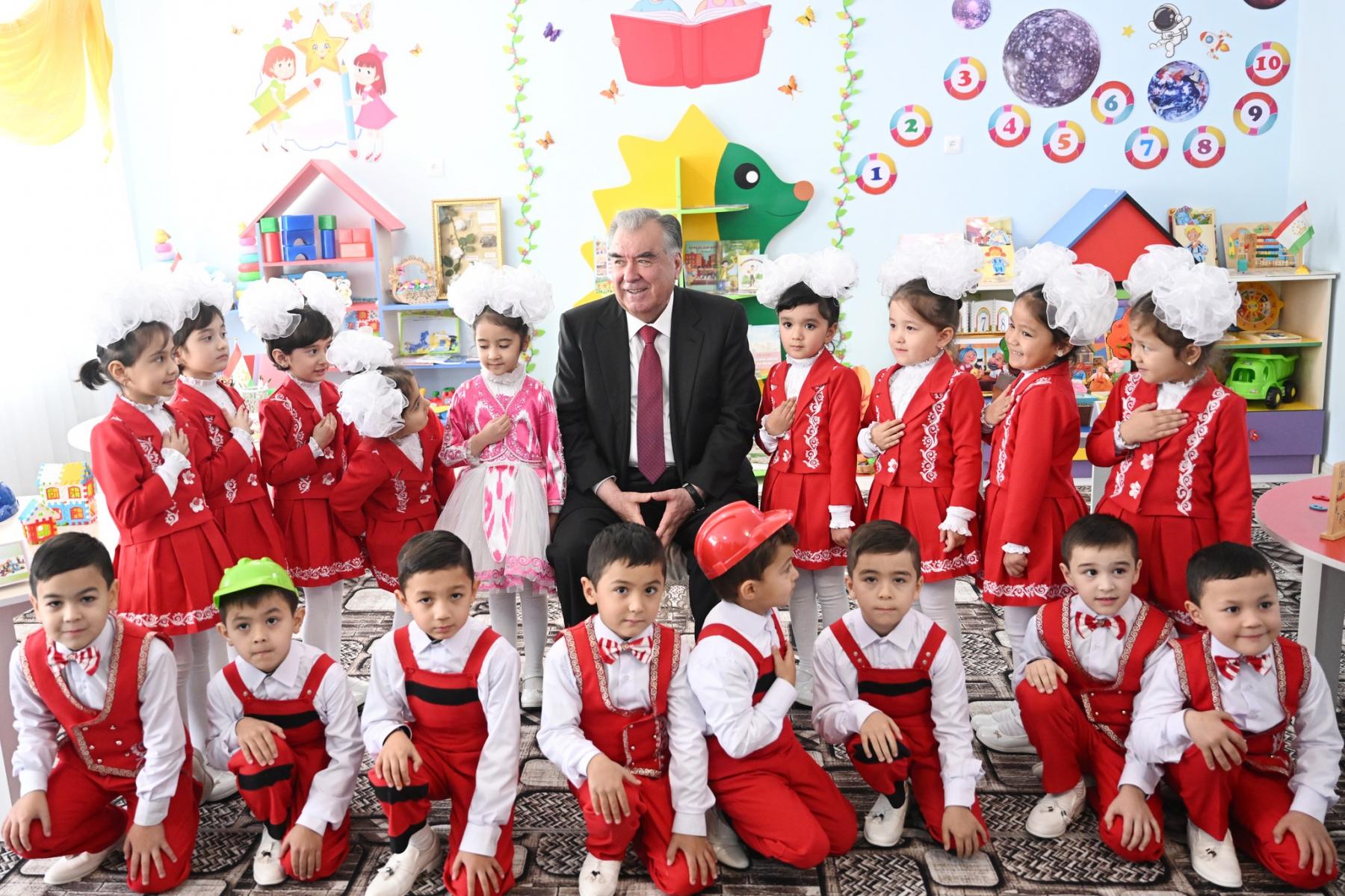 Пешвои миллат муҳтарам Эмомалӣ Раҳмон зимни шиносоӣ ва сӯҳбати гарму самимӣ бо кӯдакону мураббиён изҳор доштанд, ки зинаи нахустини таълиму тарбия ва ба камол расонидани фарзандон маҳз аз кӯдакистон оғоз меёбад.