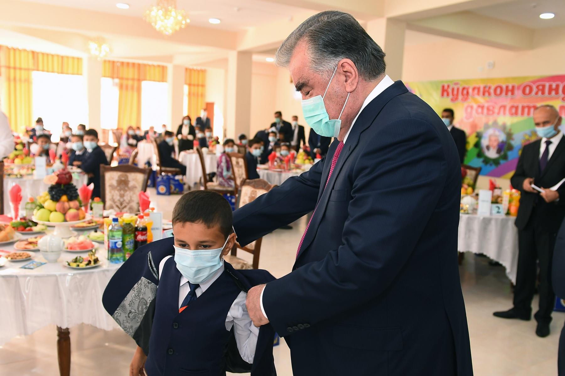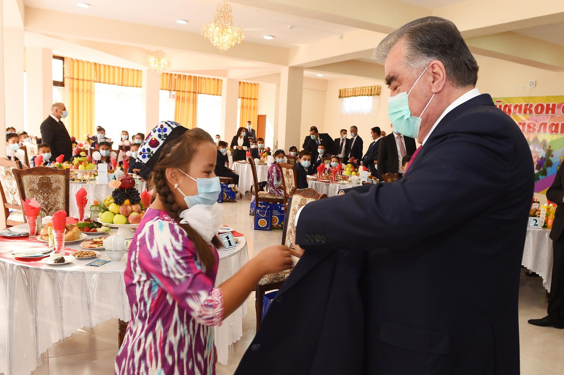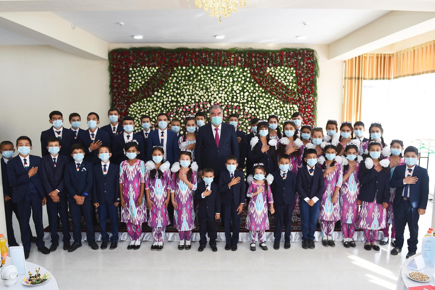 Дар ҳамин ҷо Президенти Ҷумҳурии Тоҷикистон муҳтарам Эмомалӣ Раҳмон бо 40 нафар ятимон, 17 нафар духтар ва 23 нафар писар, ки бо амри тақдир аз падар ва ё модар ятим мондаанд, суҳбату мулоқоти самимимона анҷом дода, ба онҳо туҳфаҳои хотиравӣ, аз қабили сару либоси мактабӣ, либосҳои зимистона, шириниҳо ва туҳфаҳои пулӣ тақдим намуданд, ки боиси шодиву нишоти онҳо гардид.