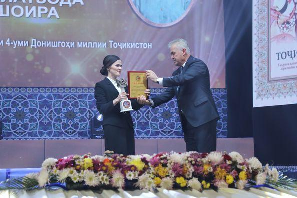 Барандаи Шоҳҷоиза миёни гурӯҳи донишҷӯёни муассисаҳои таҳсилоти миёна ва олии касбӣ (бакалавр, магистр) Давлатзода Шоира -донишҷӯи курси 4-уми Донишгоҳи миллии Тоҷикистон