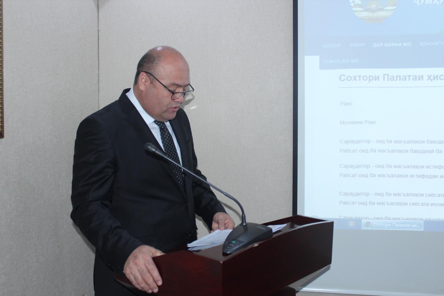 Н. Собирзода-муовини вазири маориф ва илм зимни сухани ифтитоҳӣ иброз дошт, ки давра ба давра гузаронидани аудити молиявӣ аз тарафи Палатаи ҳисоби мамлакат дар вазорату кумита ва ниҳодҳои давлатӣ, аз ҷумла Вазорати маориф ва илм баёнгари он аст, ки Ҳукумати кишвар мунтазам аз болои сарфу харҷи маблағҳои буҷетӣ назорат мебарад ва ин амалкард боис ба он мегардад, ки масъулини тамоми ниҳодҳои давлатӣ дар самти равона кардани маблағҳои буҷетӣ барои пешбурди соҳаҳои хеш ба қонуншиканиҳо роҳ надиҳанд ва пайваста дар самаранок истифода бурдани он масъулияти бештар ҳис намоянд.
