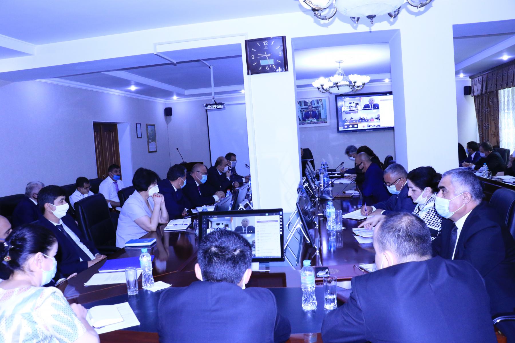 Дар рафти музокираи ҷаласа М.Азизӣ - сардори Сарраёсати маорифи шаҳри Душанбе, О.Мардов - сардори раёсати маорифи ВМКБ, Д.Исозода-сардори раёсати маорифи вилояти Хатлон, О.Каримзода - сардори раёсати маорифи вилояти Суғд тариқи онлайн пайваст гардида, аз бурду бохти соҳа дар шаҳру ноҳияҳои кишвар ҳисоботи мухтасар пешниҳод намуданд.