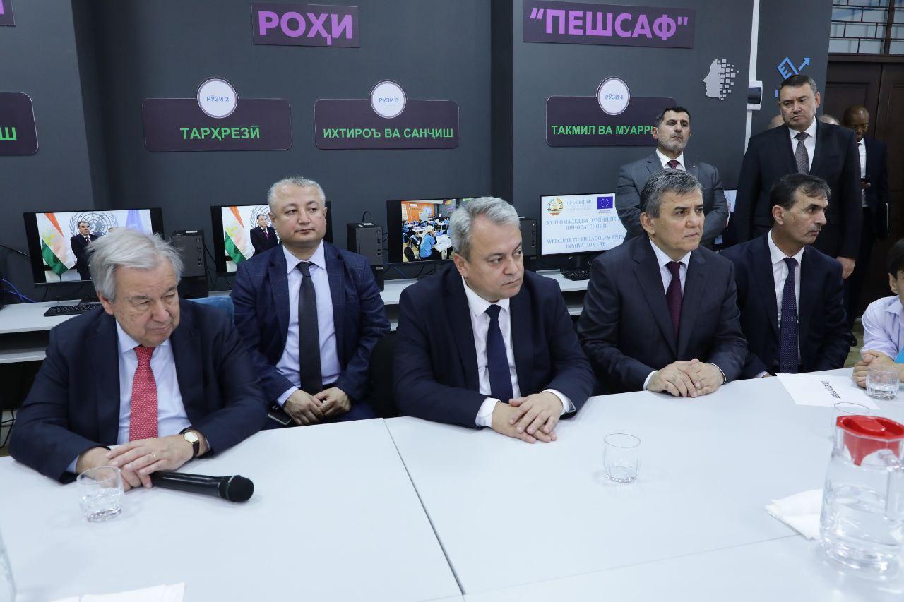 Имрӯз Дабири кулли Созмони Милали Муттаҳид муҳтарам Антонио Гутерриш дар доираи сафари расмӣ ба Ҷумҳурии Тоҷикистон аз Озмоишгоҳи инноватсионии Муассисаи давлатии “Маркази таҳсилоти иловагии ноҳияи Шоҳмансур”-и шаҳри Душанбе дидан намуда, бо таълимгирандагони марказ суҳбат оростанд. Зимни боздид дарҷ намуданд, ки боиси хушнудист, ки кӯдакону наврасони Ҷумҳурии Тоҷикистон дорои ҳамагуна имкониятҳову шароитҳои муосир ва ҳамқадами замонанд ва ин пеш аз ҳама аз дастгириҳову ғамхориҳои давлату Ҳукумати Ҷумҳурии Тоҷикистон, бахусус Сарвари давлат муҳтарам Эмомалӣ Раҳмон мебошад.