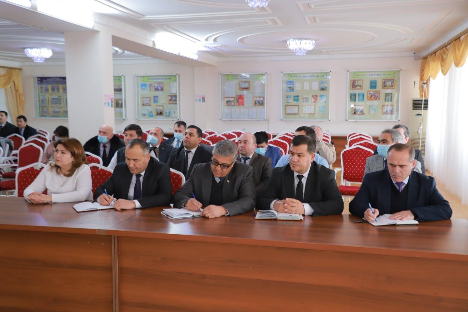 Пас аз боздид ва шиносоӣ бо ҷараёни корҳои ободонӣ вазири маориф ва илми кишвар бо кормандону устодони донишгоҳ мулоқоти судманд анҷом дод. Зимни суҳбат вазири маориф ва илми кишвар иброз дошт, ки корҳои бунёдии бинои таълимиву маҷлисгоҳ ва бинои баландошёнаи истиқоматӣ барои устодону кормандон бояд тақвият ёбанд. Инчунин, вазири маориф ва илми мамлакат перомуни гузаштан ба таҳсилоти рақамӣ, ҷорӣ намудани ихтисосҳои ба талаботи бозори меҳнат ҷавобгӯ, омӯзиши амиқи забонҳои хориҷӣ, ташкили марказҳои забономӯзӣ дар донишгоҳ ва тақвияти корҳои илмиву таҳқиқотӣ ибрози андеша кард.