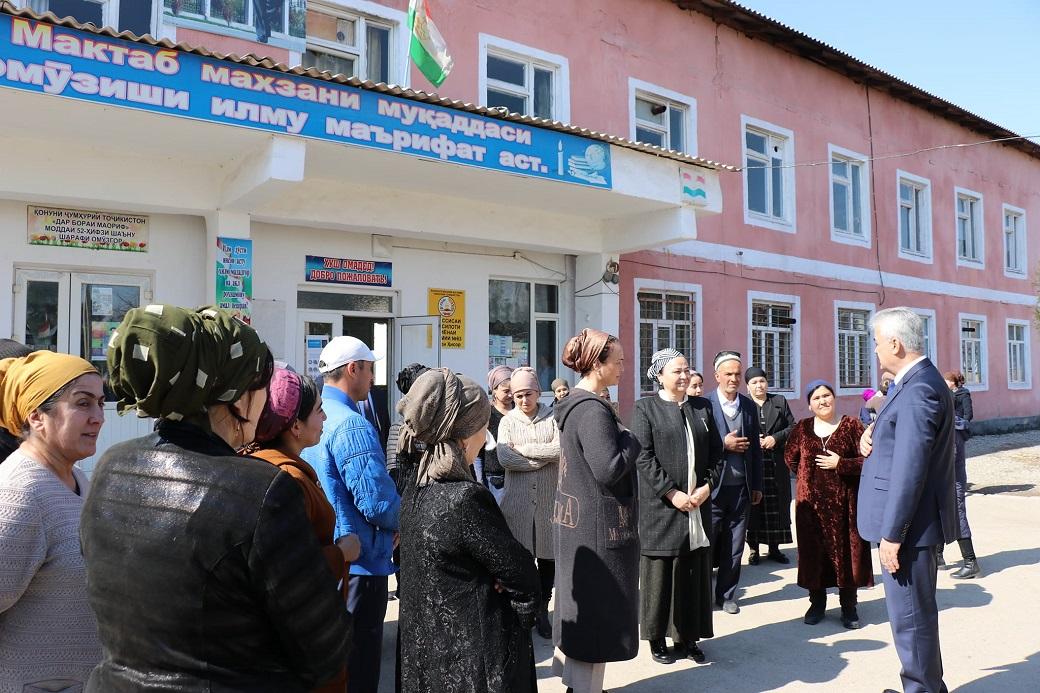 Сипас, вазири маориф ва илм бо омӯзгорони муассисаи таълимӣ суҳбати озоду самимӣ анҷом дода, вобаста ба ҳалли мушкилоти ҷойдошта дар соҳа, хусусан ҷиҳати баланд бардоштани сифати таҳсилот фикру андешаи омӯзгоронро шунид. Аз ҷониби омӯзгорон доир ба таъмини муассиса бо технологияи муосир, хусусан, тахтаҳои электронӣ, аз таъмири капиталӣ баровардани муассиса, таъмини хонандагон бо китобҳои дарсӣ, ташкил намудани курсҳои такмили ихтисоси сайёр ва пардохти сафархарҷиҳои омӯзгорон зимни гузаштан аз курсҳои бозомӯзию такмили ихтисос, пешбинӣ намудани имтиёзҳо ба омӯзгорон, дар асоси барномаҳои таълимӣ таҳия намудани китобҳои дарсӣ як қатор таклифу пешниҳодҳо манзур гардиданд.