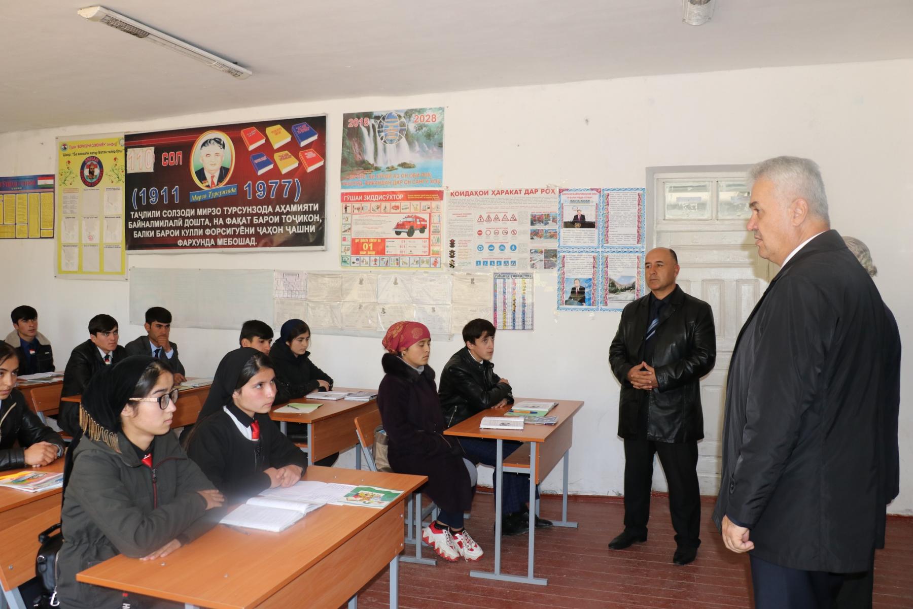 27-уми октябри соли ҷорӣ бо мақсади шиносоӣ бо вазъи таълиму тарбия, сифати таҳсилот, таъминоти муассисаҳои таҳсилоти миёнаи умумӣ бо кадрҳои омӯзгорӣ, китобҳои дарсию бадеӣ, рафти иҷрои барномаҳои давлатӣ, ҳолати физикӣ, омодагии муассисаҳо ба фасли зимистон ва истифодаи мақсадноки заминҳои назди муассисаҳо вазири маориф ва илми Ҷумҳурии Тоҷикистон Раҳим Саидзода аз муассисаи таҳсилоти миёнаи умумии №9-и ноҳияи Файзобод дидан намуд.