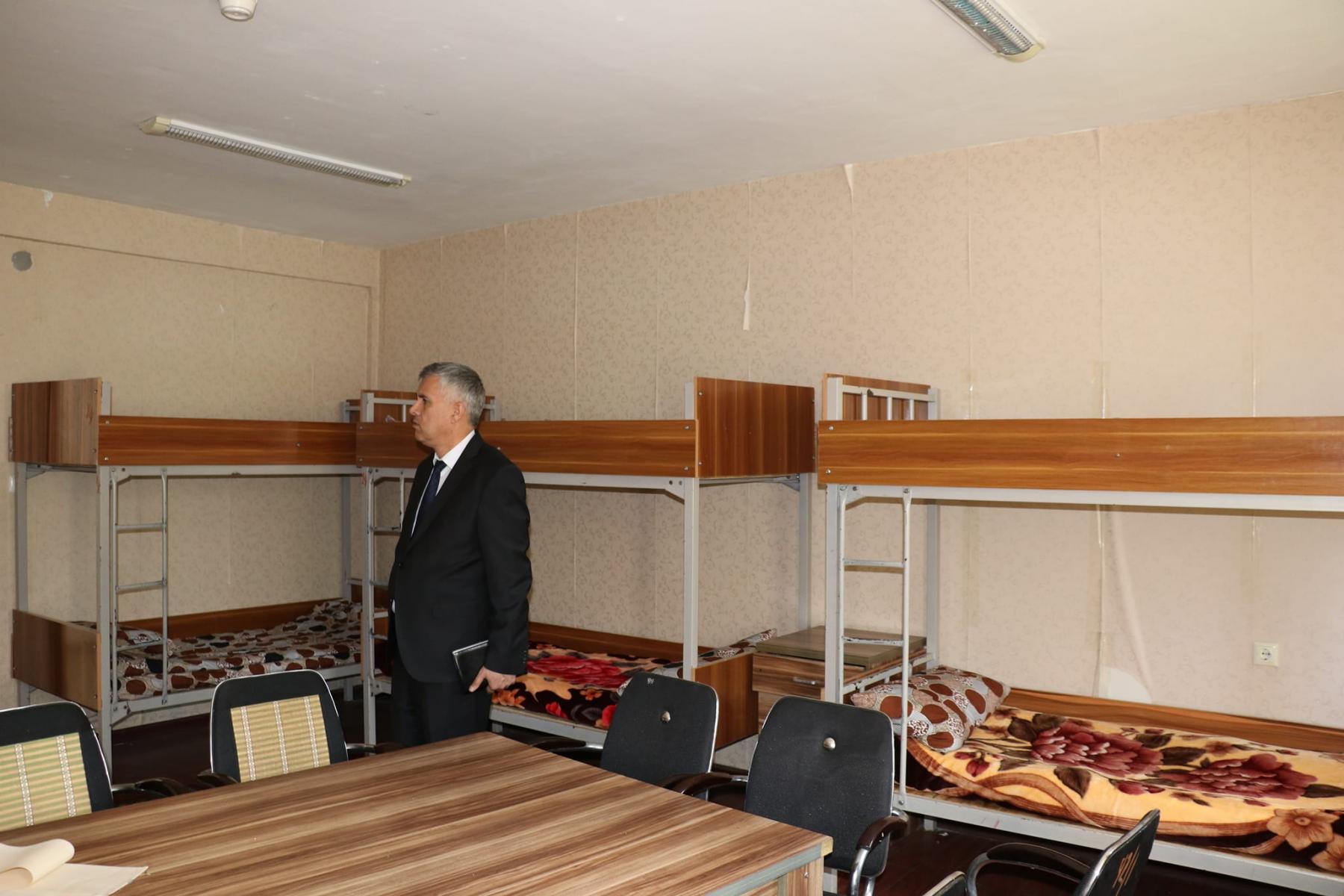 Муовини вазир, дар қатори синфхонаҳои таълимӣ аз шароити зисти хонандагон дар хобгоҳи муассиса дидан намуд.