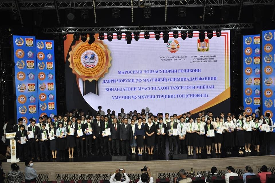 2-юми июли соли равон бо ташаббуси мақомоти иҷроияи ҳокимияти давлатии шаҳри Душанбе дар толори “Кохи Суруш” маросими ҷоизасупории ғолибони даври ҷумҳуриявии Олимпиадаи фаннии хонандагони муассисаҳои таҳсилоти миёнаи умумии Ҷумҳурии Тоҷикистон (синфҳои 11) баргузор гардид.