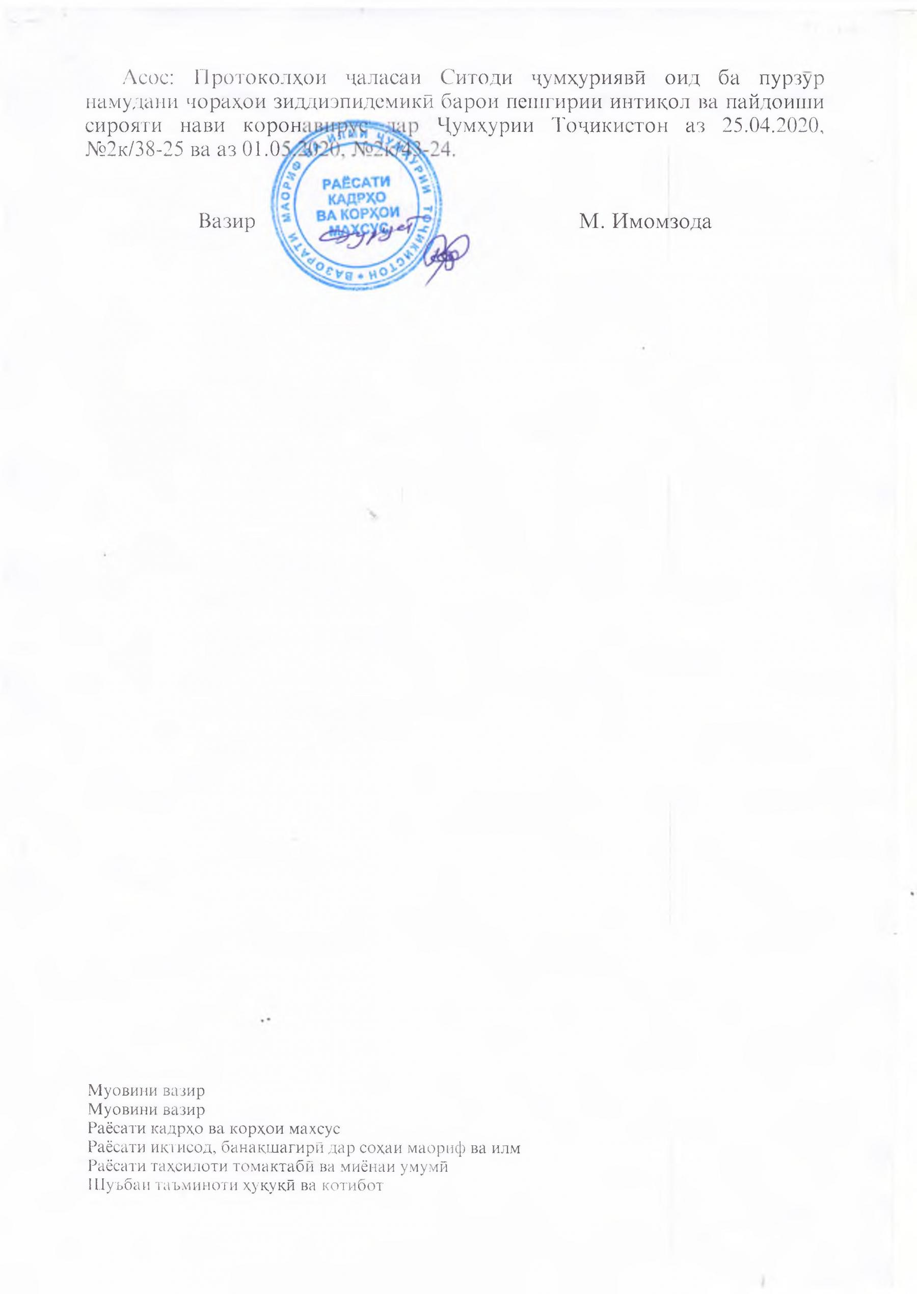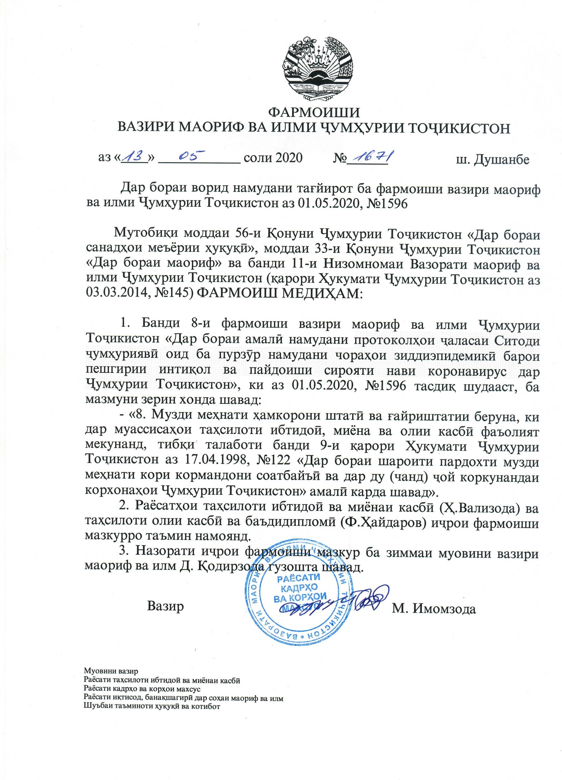 ФАРМОИШИ ВАЗИРИ МАОРИФ ВА ИЛМИ ҶУМҲУРИИ ТОҶИКИСТОН