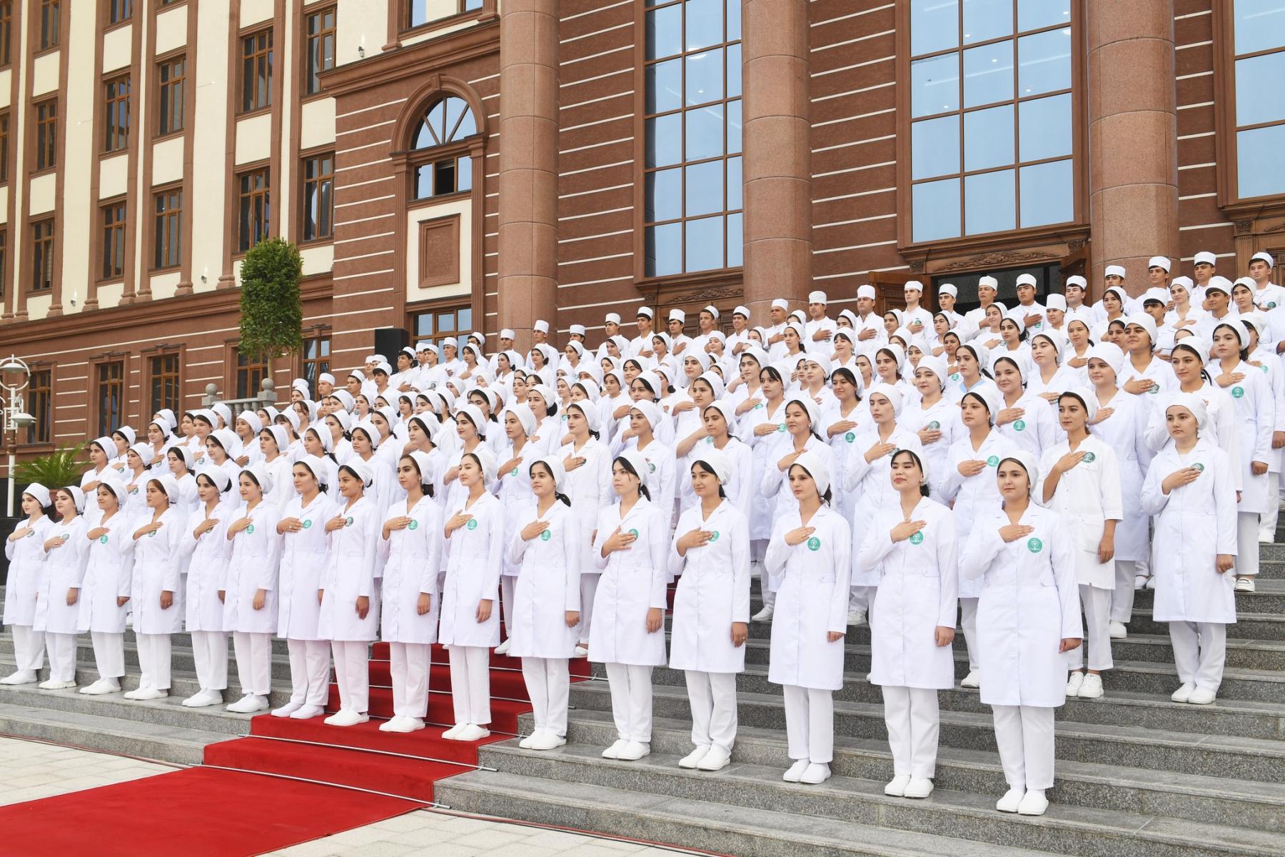 Пешвои миллат муҳтарам Эмомалӣ Раҳмон зимни шиносоӣ аз шароити фароҳамгардида дар бинои асосии Донишгоҳи давлатии тиббии Хатлон бо омӯзгорону донишҷӯён мулоқоти самимӣ доир намуда, ба истифода супоридани бинои хуштарҳи муосирро ба онҳо таҳният гуфтанд.