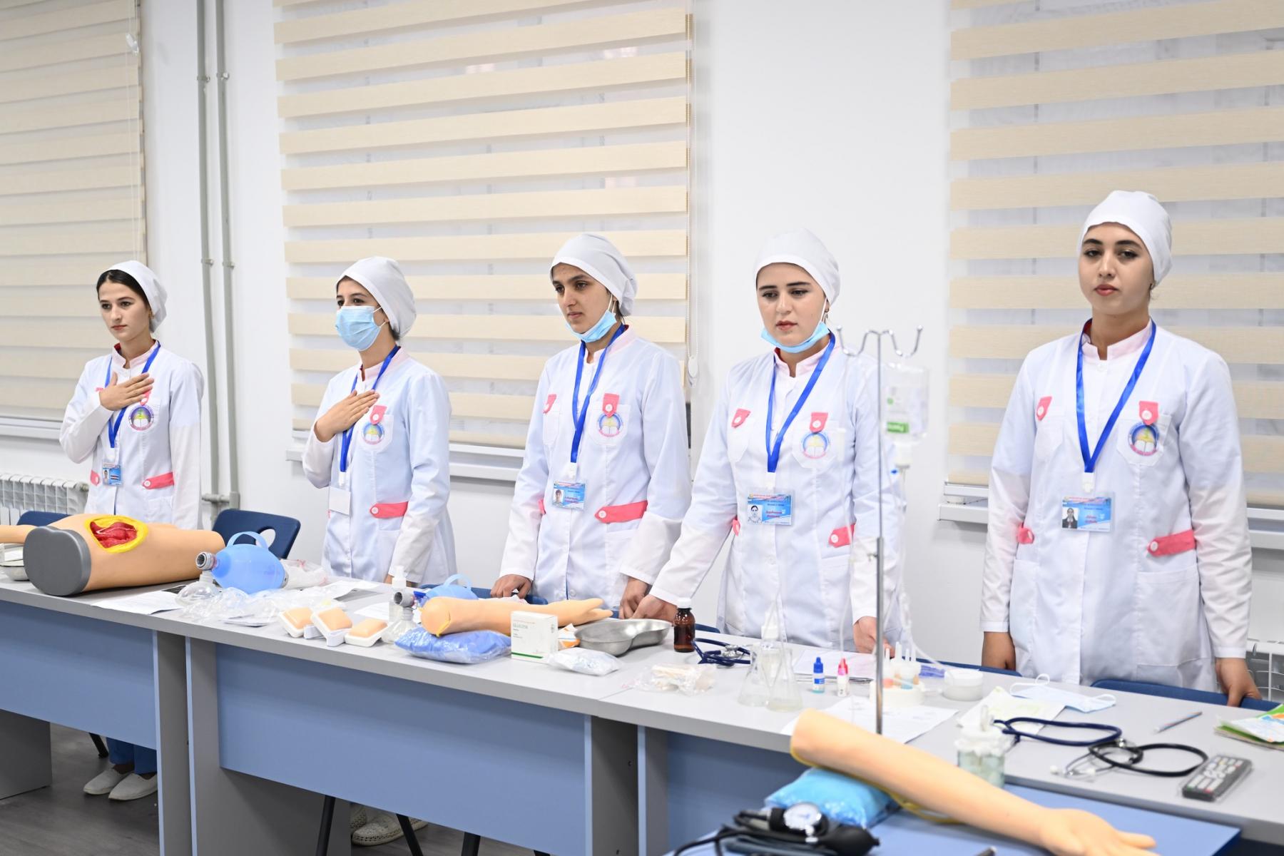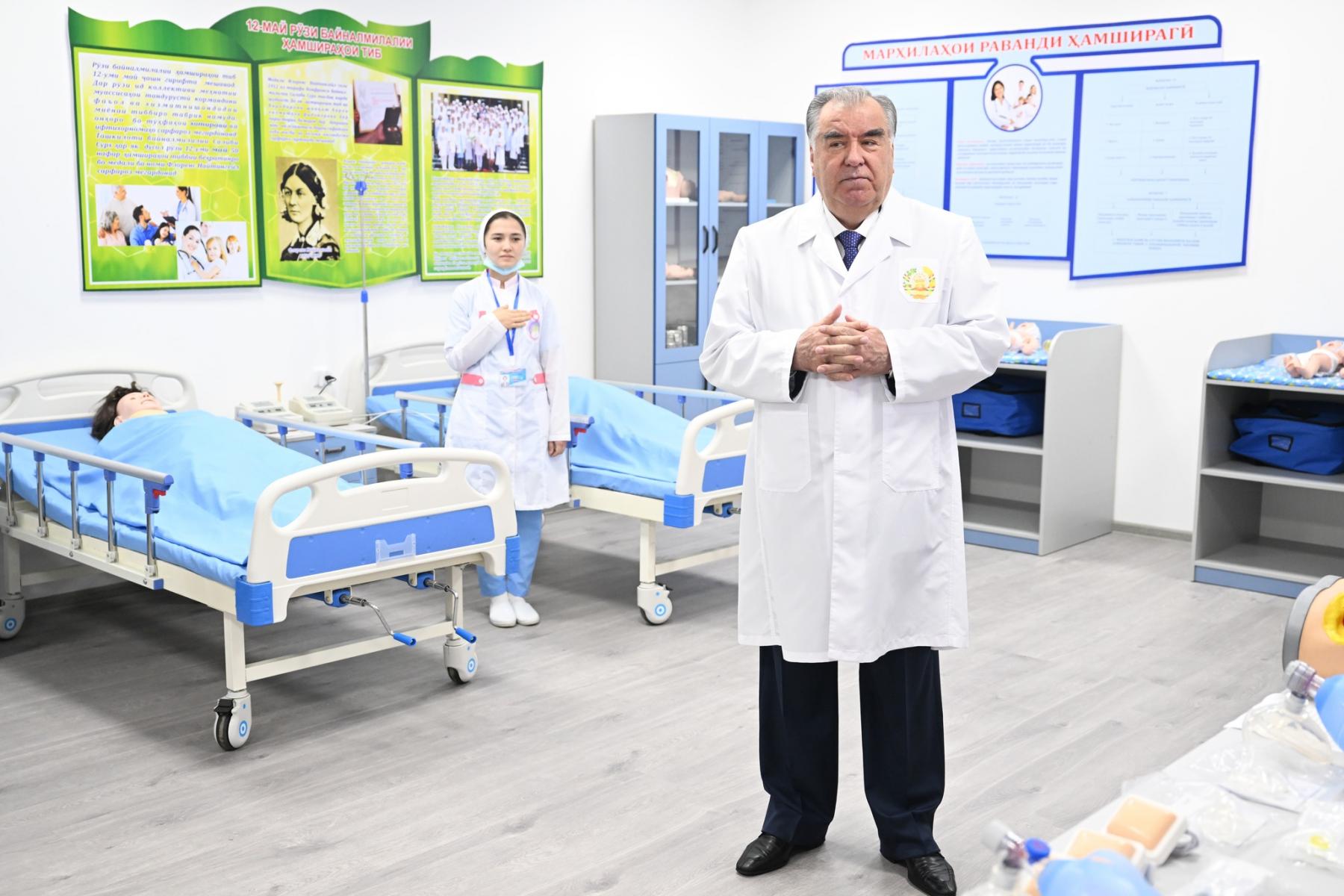 Аснои шиносоӣ бо шароитҳои фароҳамгардида дар бинои хуштарҳу замонавии таълимӣ Пешвои миллат муҳтарам Эмомалӣ Раҳмон ба сифати корҳо баҳои баланд дода, аз муҳайё гардидани имкониятҳои васеи илму касбомӯзӣ масъулонро барои омода кардани мутахассисони дорои маълумоти миёнаи касбӣ дар соҳаи тиб роҳнамоӣ карданд.