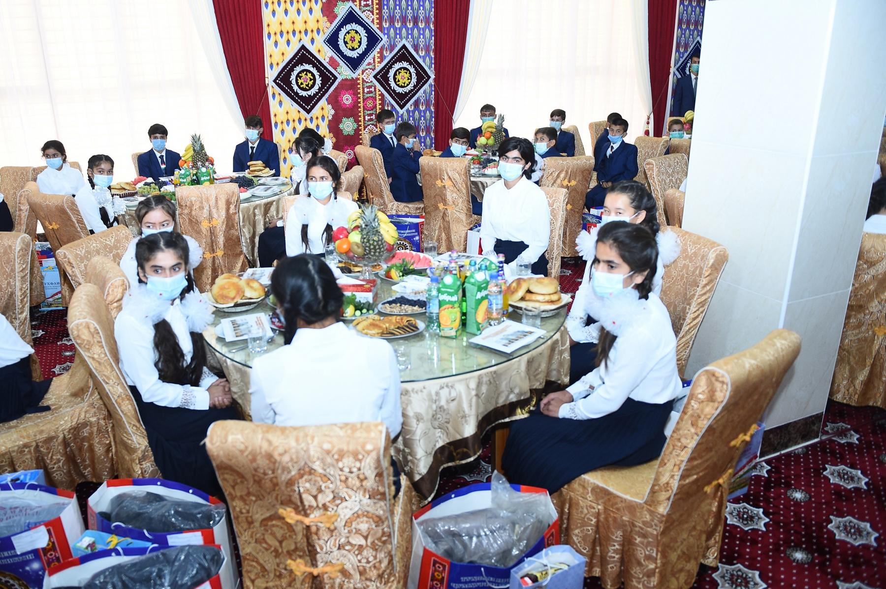 Сарвари давлат муҳтарам Эмомалӣ Раҳмон зимни суҳбати самимӣ бо ятимон онҳоро барои истифодаи пурсамар аз шароиту имкониятҳое, ки Ҳукумати мамлакат барояшон дар самти азхуд кардани донишҳои замонавӣ, техникаву технологияи муосир ва муҳимтар аз ҳама, дӯст доштани Ватани азиз муҳайё кардааст, ҳидоят намуданд.