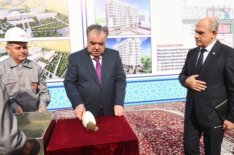 Пас аз шиносоӣ бо лоиҳаи сохтмони бинои истиқоматии баландошёна Пешвои миллат муҳтарам Эмомалӣ Раҳмон барои бунёди ин иншоот санги асос гузоштанд. Бо бунёди бинои нави истиқоматӣ 95 нафар омӯзгорони ба манзили зист эҳтиёҷманд, соҳиби хонаҳои замонавӣ мегарданд.