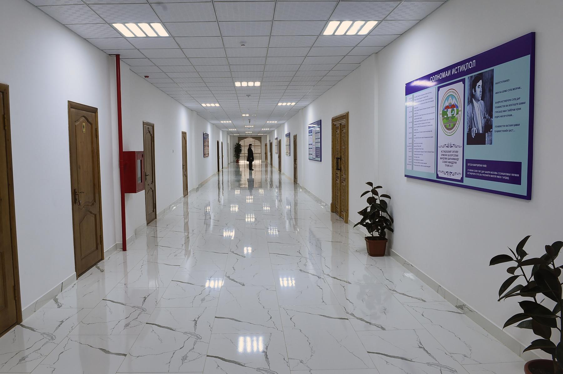 Дар ҳар як ошёна ҳуҷраҳои кории устодону кормандон, синфхонаҳои компютерию кабинетҳои лингофонӣ, озмоишгоҳҳо ва дигар утоқҳои лозима барои омӯзгорону донишҷӯён бунёд гардидааст.