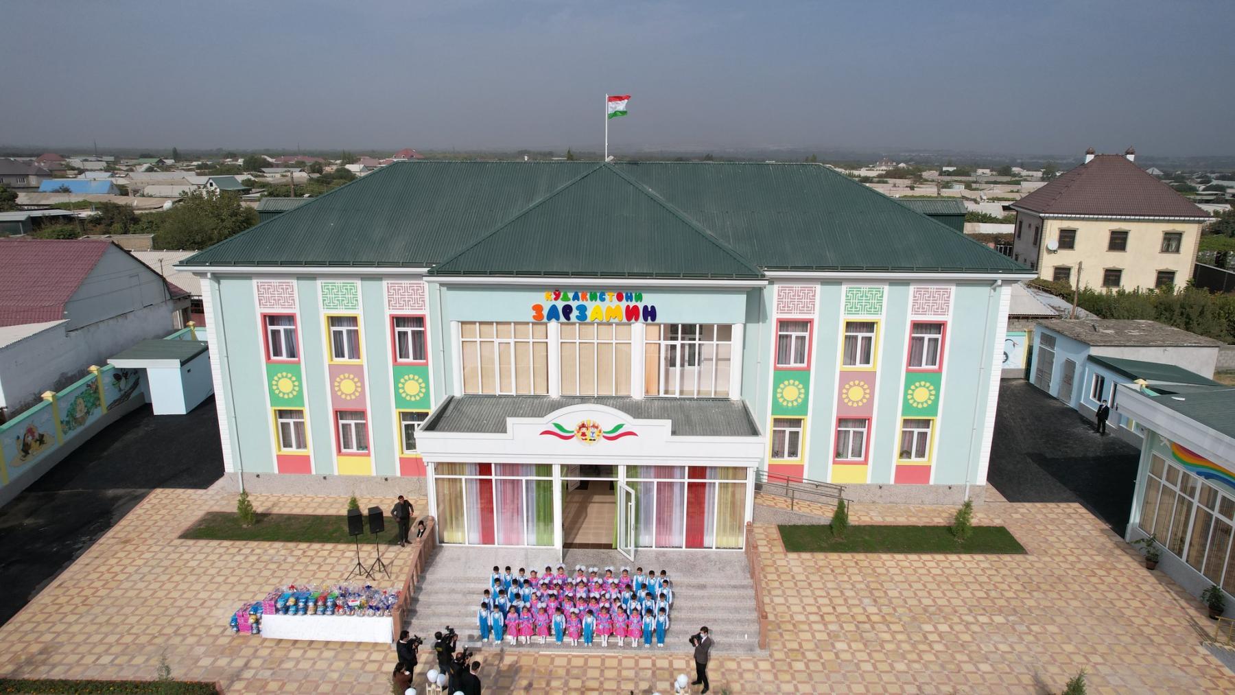 Бинои кӯдакистон бо дастгирии Ҳукумати Ҷумҳурии Тоҷикистон ва бо маблағгузории Мақомоти иҷроияи ҳокимияти давлатии ноҳияи Бобоҷон Ғафуров бо сифати баланд дар муддати хеле кутоҳ бунёд гардидааст.