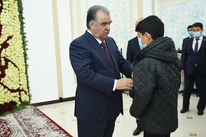 Пас аз ифтитоҳи иншооти нави хизматрасонӣ дар ошёнаи дуюми бино Сарвари давлат муҳтарам Эмомалӣ Раҳмон бо ятимони кулли вилояти Суғд вохӯрии самимӣ анҷом дода, ба онҳо сару либос, китоб ва ширинӣ тӯҳфа намуданд.