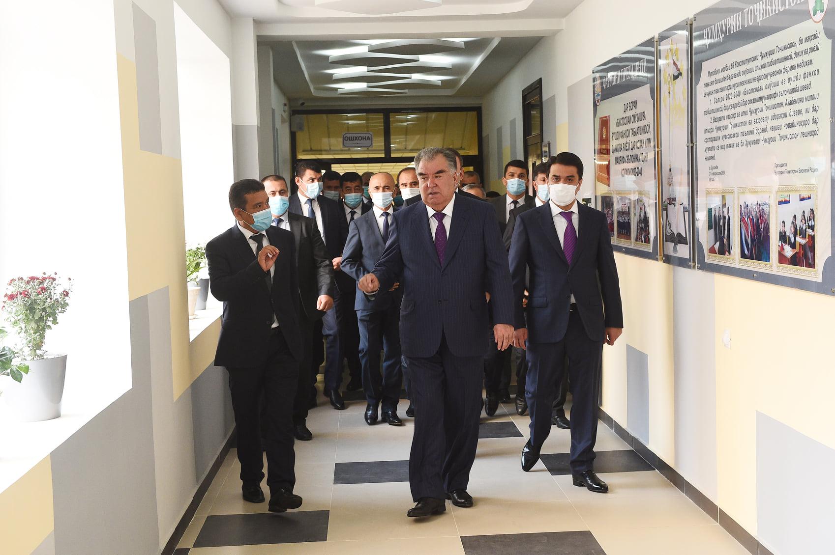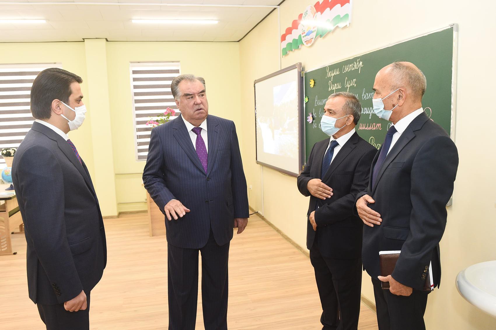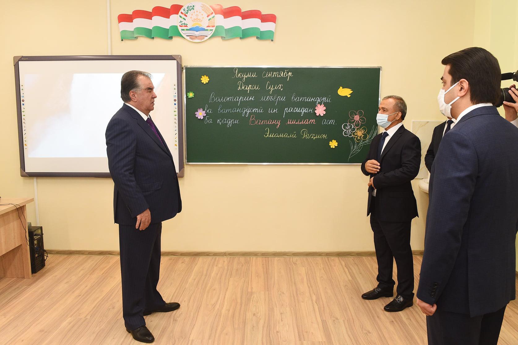 Баъд аз бардоштани парда аз рӯи лавҳаи рамзӣ Пешвои миллат муҳтарам Эмомалӣ Раҳмон бо шароитҳои фароҳамгардида дар муассисаи нави таълимӣ аз наздик шинос шуданд.