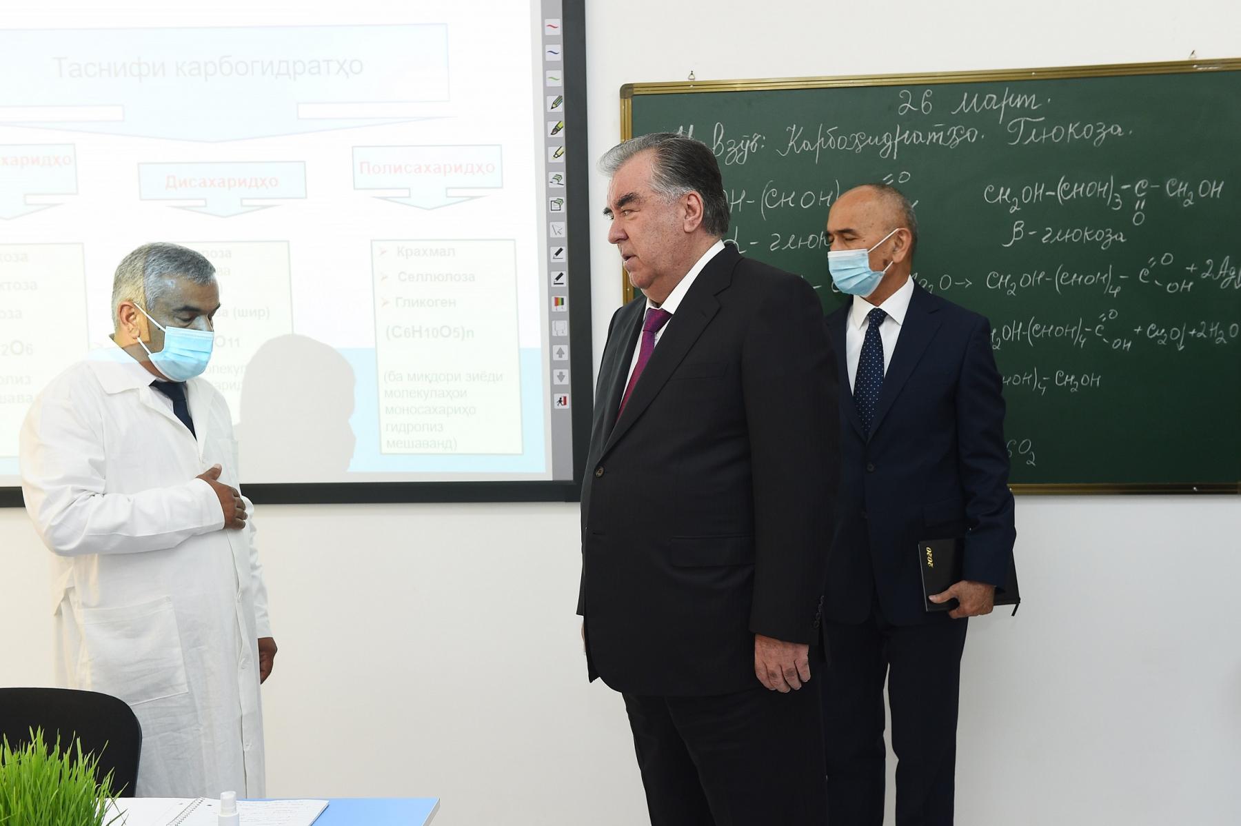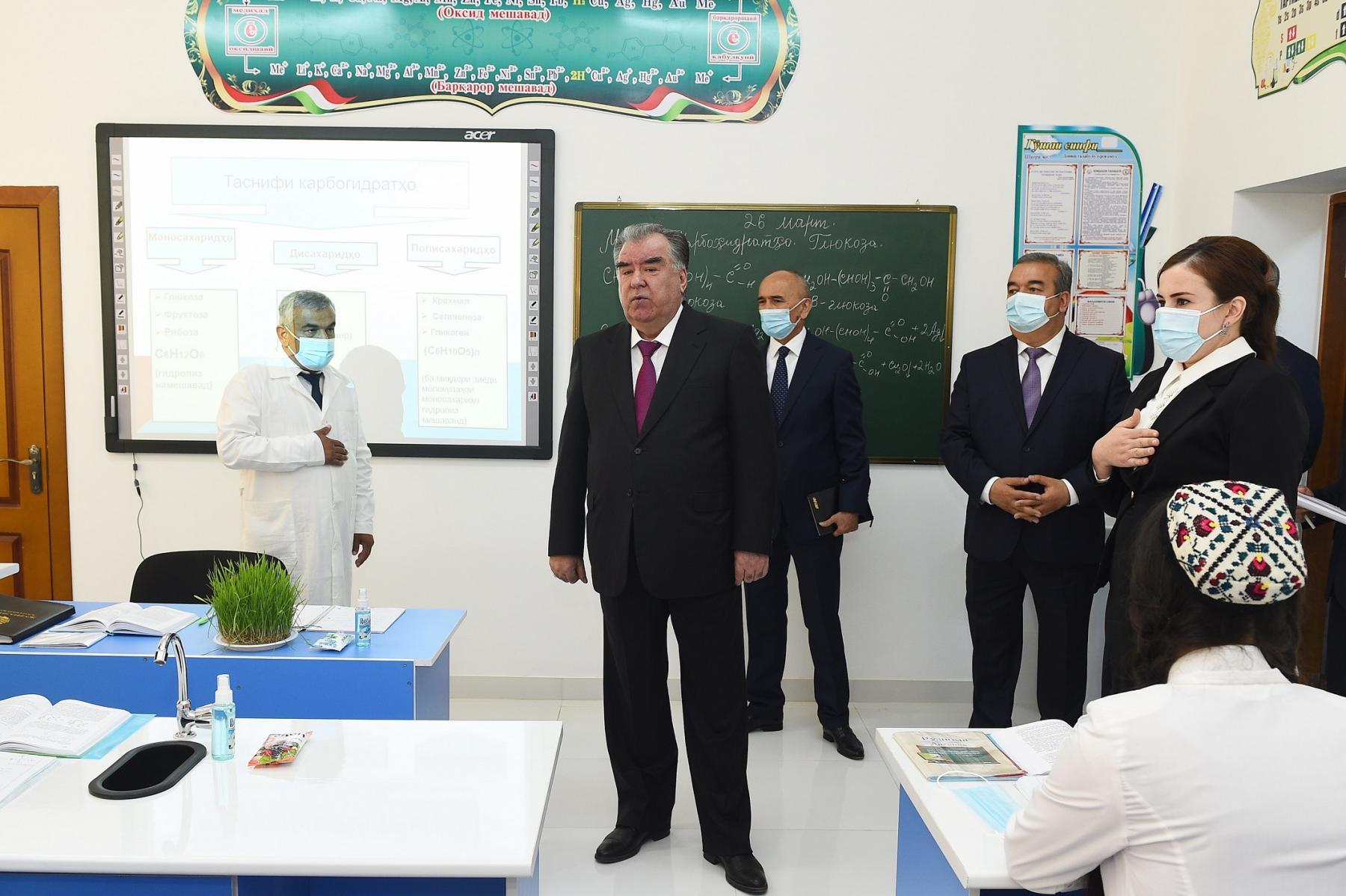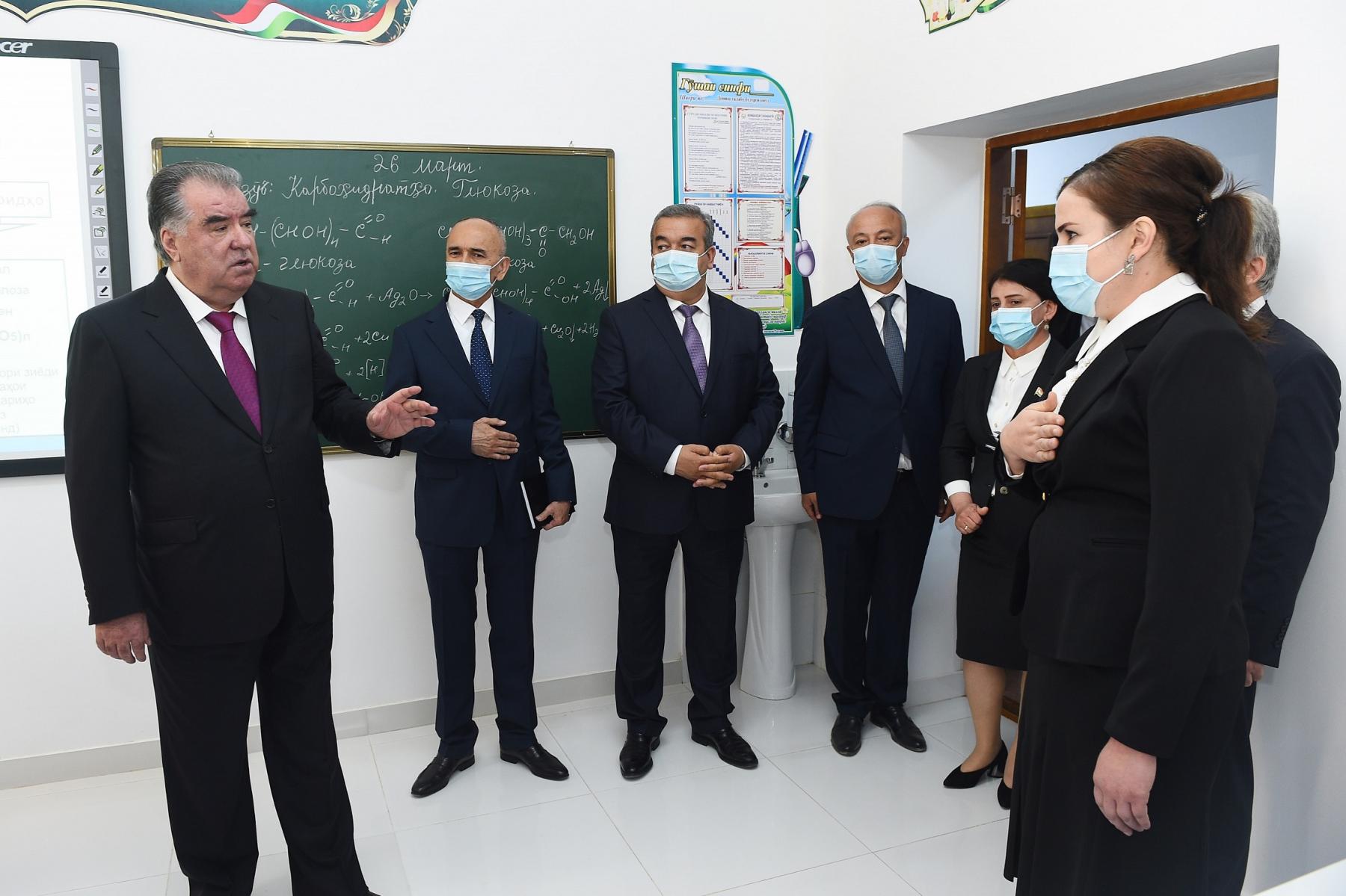 Пас аз шиносоӣ бо шароити таълим дар мактаби нав Сарвари давлат муҳтарам Эмомалӣ Раҳмон ба корҳои сохтмонӣ баҳои баланд дода, таваҷҷӯҳи омӯзгоронро ба сатҳу сифати таълим ҷалб карданд.