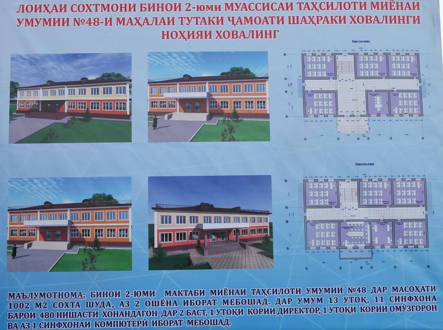 Дар ҳаминҷо Президенти Ҷумҳурии Тоҷикистон муҳтарам Эмомалӣ Раҳмон бо лоиҳаи боз як бинои нави иловагии дуошёнаи Муассисаи таҳсилоти миёнаи умумии рақами 48 шинос гардиданд.