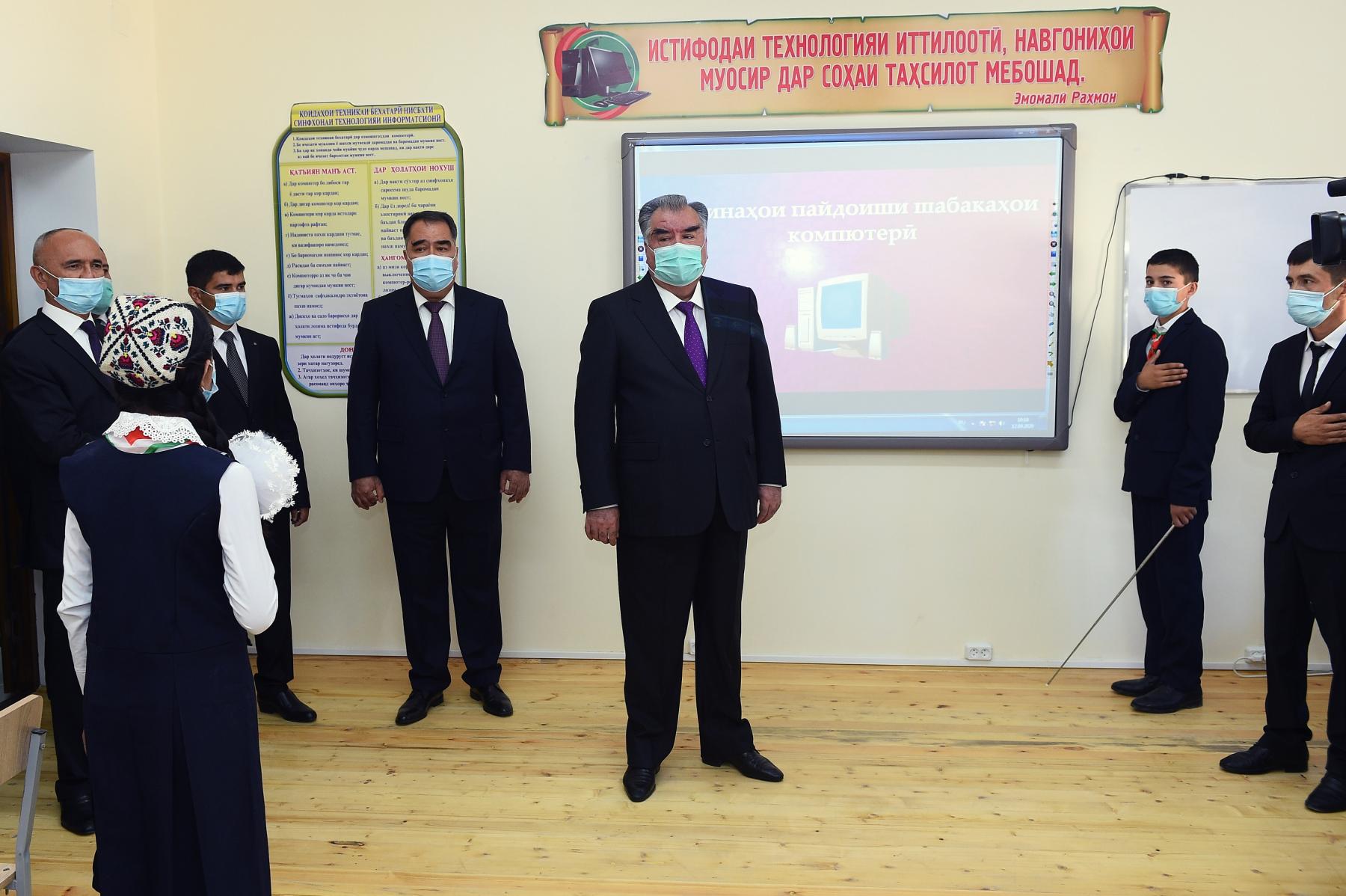 12 сентябр Асосгузори сулҳу ваҳдати миллӣ - Пешвои миллат, Президенти Ҷумҳурии Тоҷикистон муҳтарам Эмомалӣ Раҳмон дар шаҳраки Саразми шаҳри Панҷакент бинои нави Муассисаи таҳсилоти миёнаи умумии рақами 72-ро мавриди истифода қарор доданд.