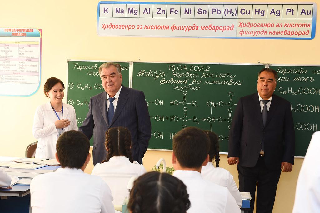 Сарвари давлат муҳтарам Эмомалӣ Раҳмон зимни шиносоӣ бо шароити таълим дар муассисаи нав ба сифати корҳои анҷомёфта баҳои баланд дода, бо омӯзгорону хонандагон суҳбати самимӣ доир карданд.