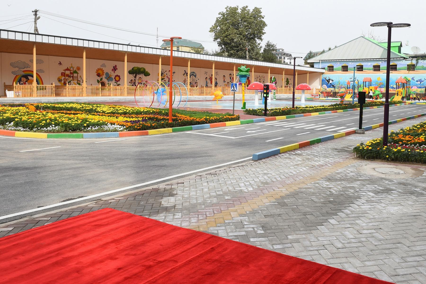 Дар саҳни кӯдакистон фаввораҳои замонавӣ, майдончаҳои бозии футбол, майдончаҳои бозии кӯдакон, соябонҳо, ҳавзҳои шиноварӣ, таваққуфгоҳи автомабилӣ бо сифати баланду ороиши муосири меъморӣ бунёд ёфтаанд.