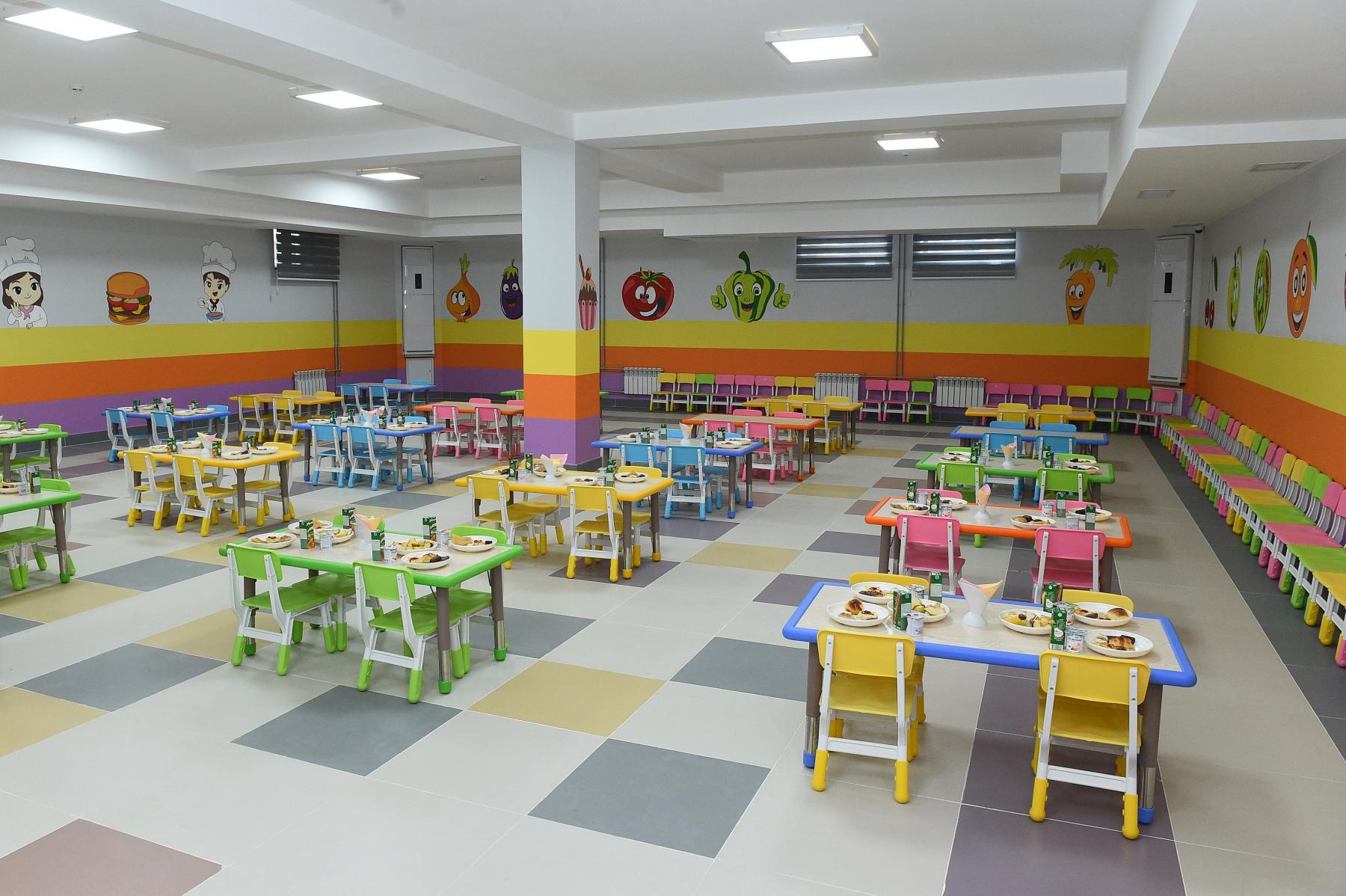 Дар ошёнаи якуми бино 8 гурӯҳи алоҳида ҷудо карда шудааст, ки ба ҳар як гурӯҳ 25 нафари кӯдак рост меояд. Дар ҳар як гурӯҳ, синфхона барои дарсхонӣ, ҳуҷраи бозикунӣ, ҳуҷраи хоб, ҳуҷраи санитарӣ барои мураббиён ва хурдсолон, ҳуҷраи хӯроктақсимкунӣ сохта шудааст.
