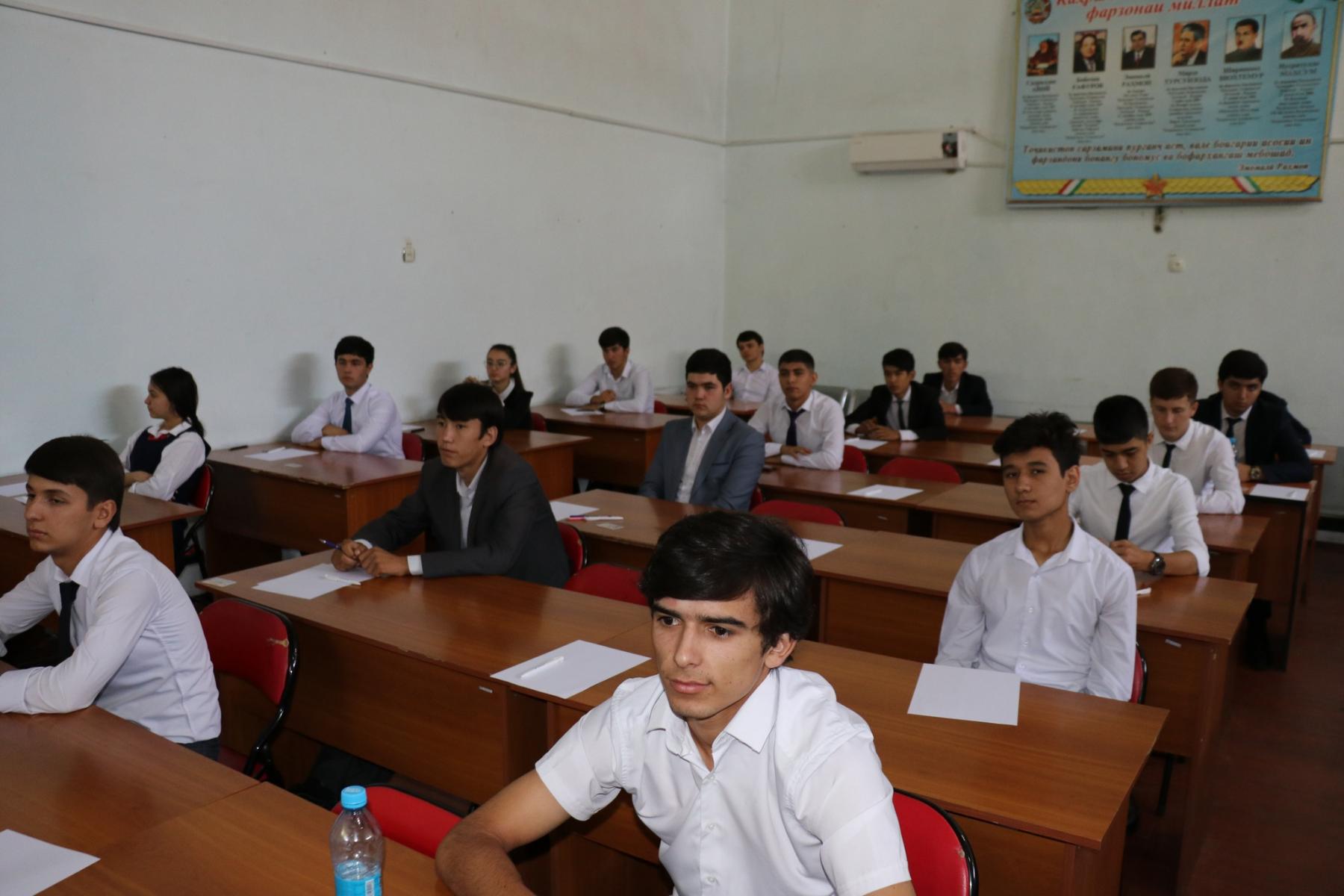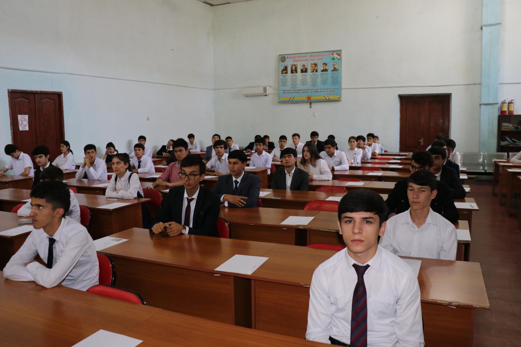 Қабл аз оғози имтиҳонот раиси Комиссияи ҷумҳуриявӣ оид ба интихоб ва тайёр намудани кадрҳо дар муассисаҳои таҳсилоти олӣ ва илмии давлатҳои хориҷӣ, муовини Сарвазири мамлакат М.Сатториён ва вазири маориф ва илм Р.Саидзода бо довталабон суҳбати самимӣ анҷом дода, ҷиҳати муваффақ гардидан дар имтиҳон ва сазовор шудан ба номи донишҷӯӣ барору комёбӣ таманно намуданд.