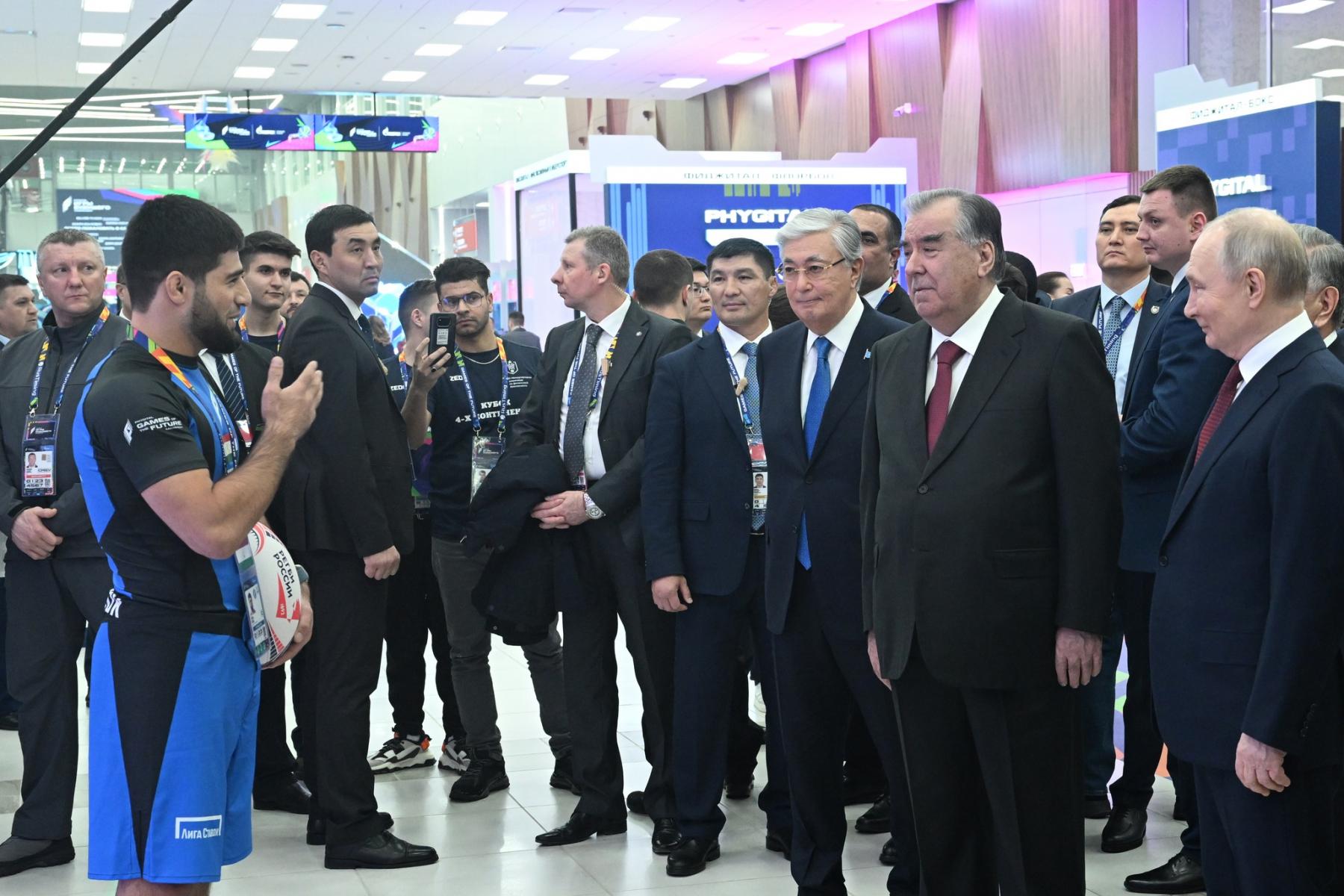 Президенти Ҷумҳурии Тоҷикистон муҳтарам Эмомалӣ Раҳмон бо Президенти Федератсия Русия муҳтарам Владимир Путин, дигар сарони давлатҳо ва меҳмонони сершумори воломақом дар шаҳри Қазон дар маросими ифтитоҳи мусобиқаҳои байналмилалии омехтаи “Бозиҳои оянда”, ки дар маҷмааи намоишии “Казан ЭКСПО” аз 21 феврал то 3 марти соли равон баргузор мегарданд, иштирок намуданд.