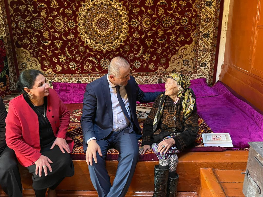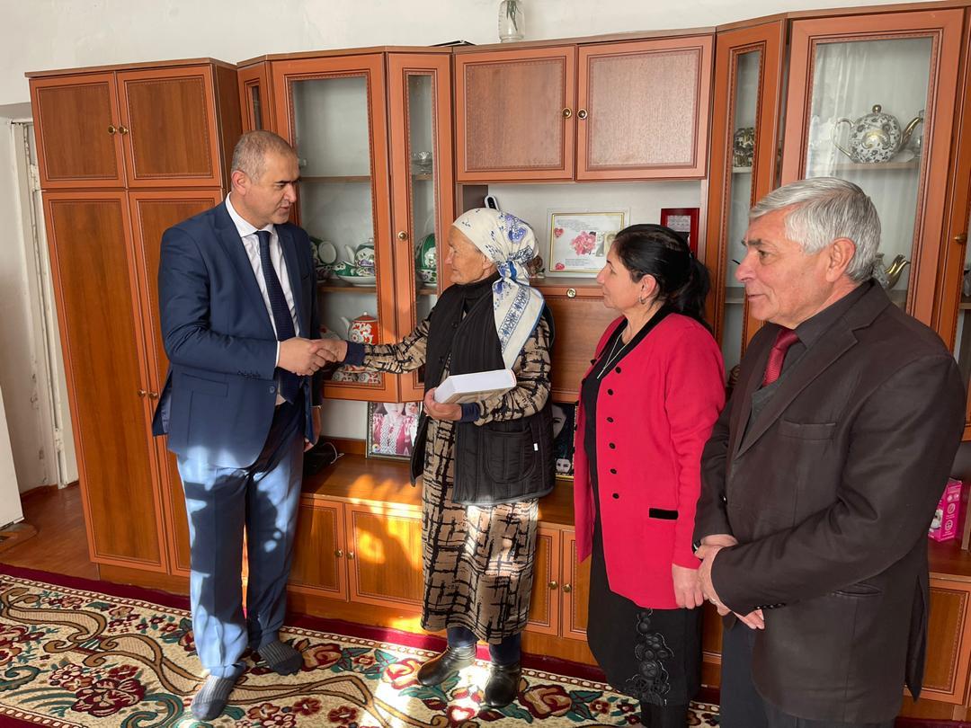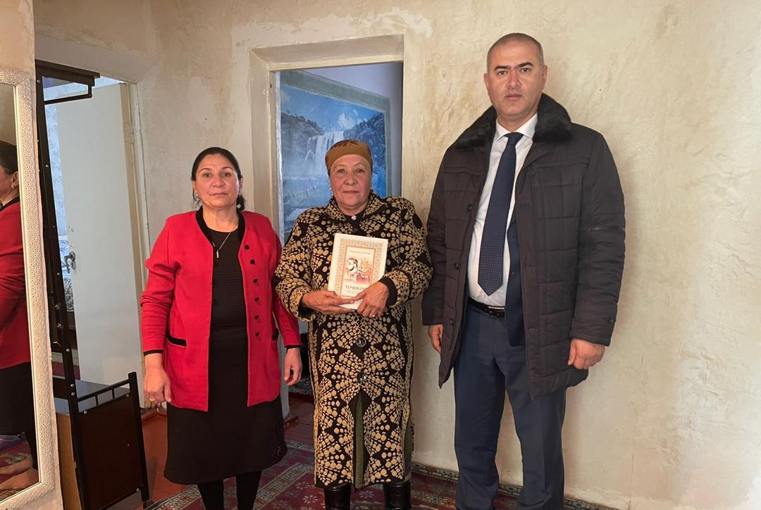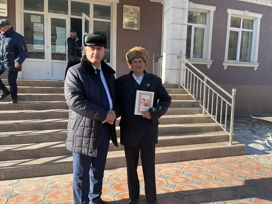 Гурӯҳи корӣ дар баробари тақсимоти китоби мазкур ба аёдати собиқадарони меҳнат Мамадсахӣ Азизхонов, Бибигулшод Мирҷонова, Бибӣ Давлатшоева, Мамнур Қурбоналиев, Бибиҳаво Шоҳдӯстмамадова, Зулайхо Тӯрдиева рафта, туҳфаи Пешвои миллат – китоби “Тоҷикон”-и аллома Бобоҷон Ғафуровро тақдим намуданд.